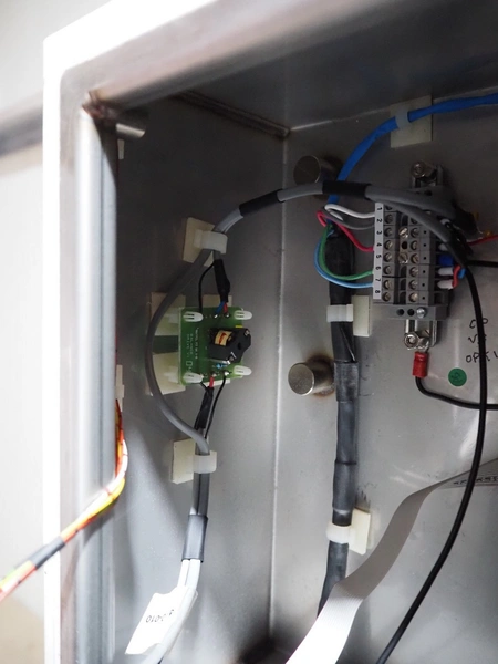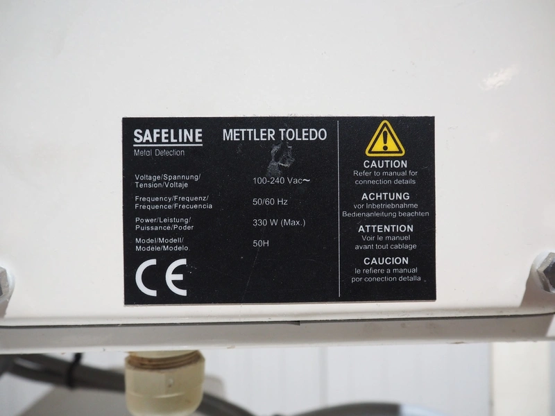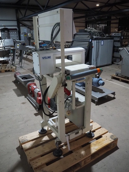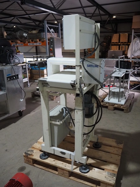Safeline metal detector, serial number: 119579, plastic belt, belt width: 250 mm, clearance: 350 mm x 110 mm, total dimensions: 700 mm x 650 mm x 1600 mm.