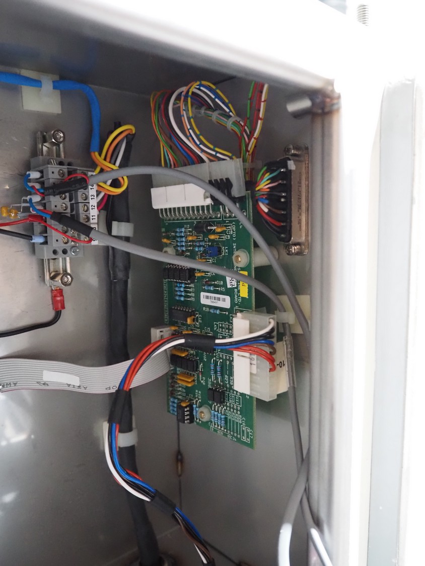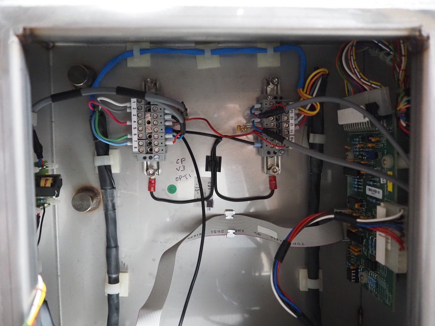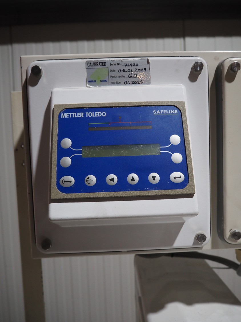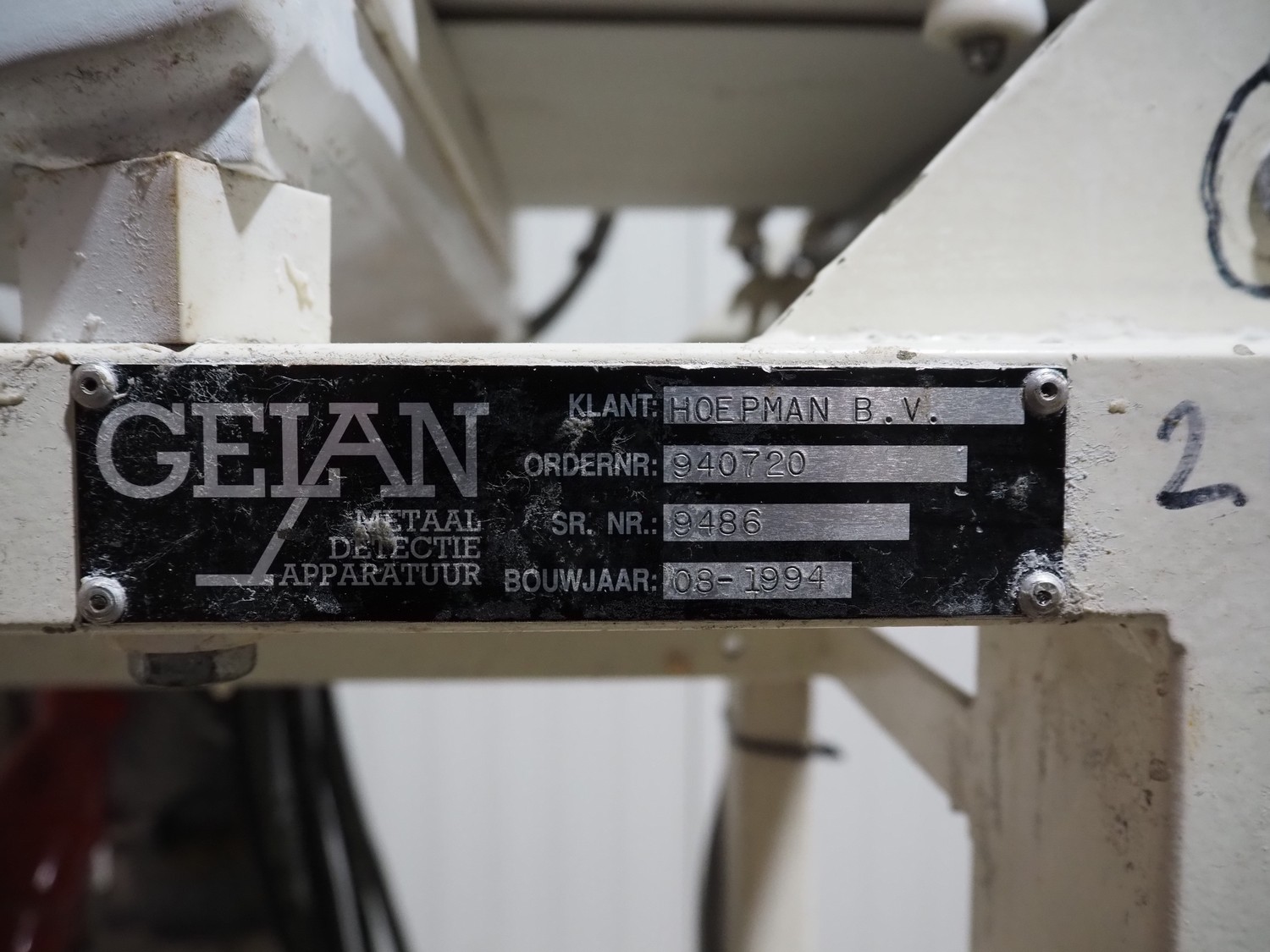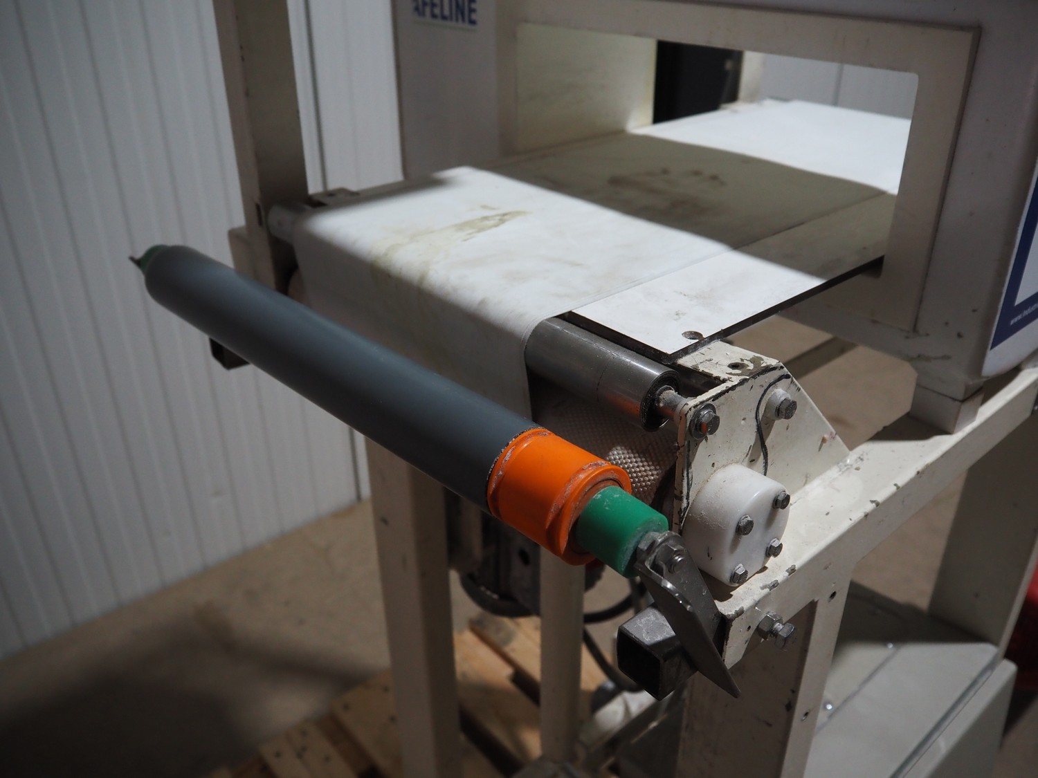 Safeline metal detector, serial number: 119579, plastic belt, belt width: 250 mm, clearance: 350 mm x 110 mm, total dimensions: 700 mm x 650 mm x 1600 mm.