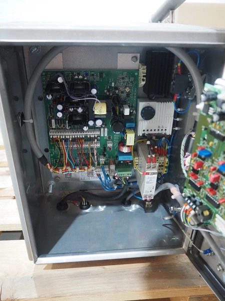 Lock Inspection Systems Ltd. pipe line metal detector head, serial number: 35651-1, year of construction: 03-08, 100-240 V, 50/60 Hz, 3 A, diameter pipe: 55 mm, total dimensions: 400 mm x 500 mm x 790 mm.