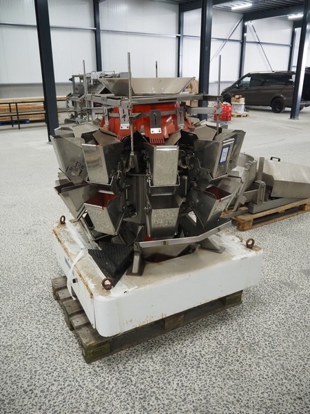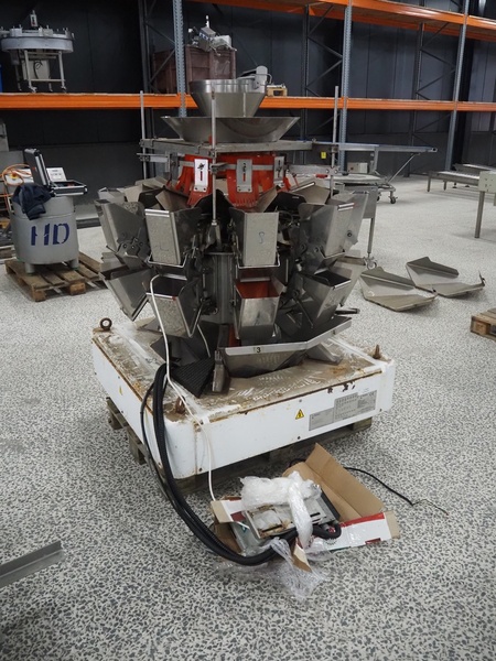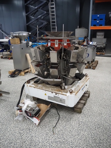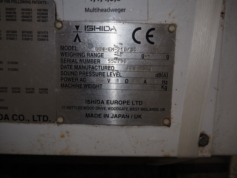 Ishida 10-heads multihead weigher, type: CCW-EM-210/30, serial number: 552790, year of construction: FEB 2003, 220 V, 1 Ph, 50 Hz, 5.5 A, weight: 445 kg, dimensions: 1250 mm x 1250 mm x 1800 mm.
