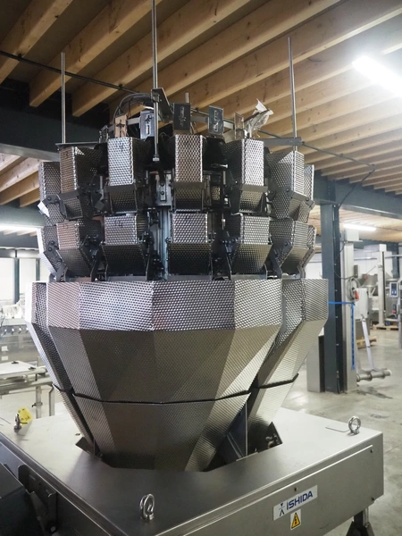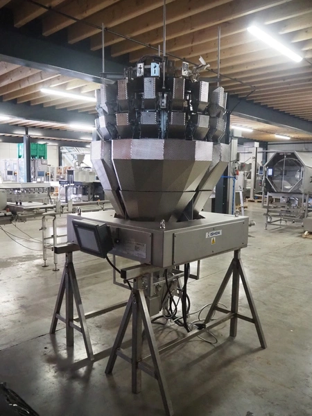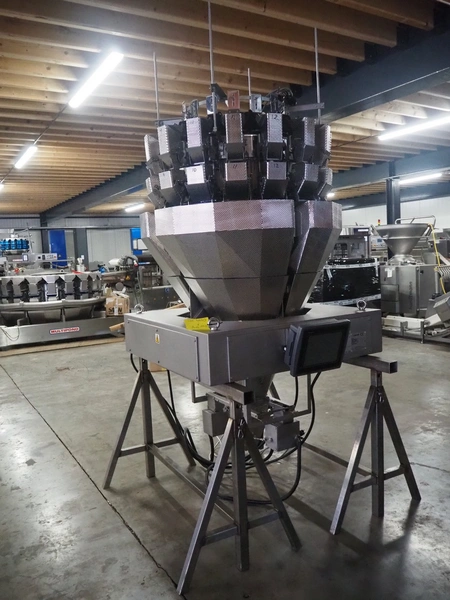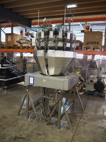 Ishida 16-heads multihead weigher, model: CCW-RVE-216B1D/15-SS, serial number: 560012161, year of construction: 08/2017, 240 V, 1 Ph, 50 Hz, 11.3 A, weight: 535 kg, dimensions: 1750 mm x 1600 mm x 2850 mm.