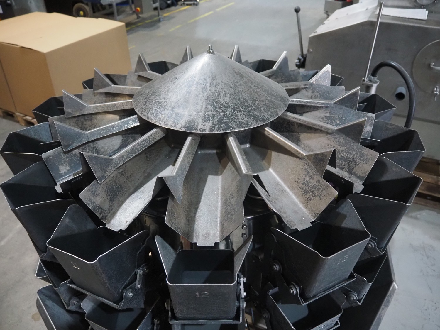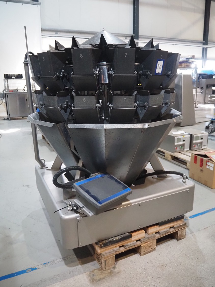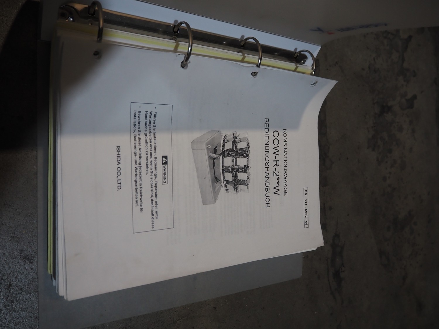 Ishida multihead weigher, 14 heads, model: CCW-R-214W-S/20-SS, serial number: 557127, year of construction: 05/2007, 240 V, 1 Ph, 50 Hz, 3.6 A, machine weight: 645 kg, dimensions: 1150 mm x 1150 mm x 1700 mm. Including pallet box with parts, dimensions: 1200 mm x 800 mm x 540 mm.