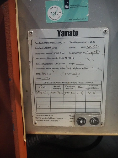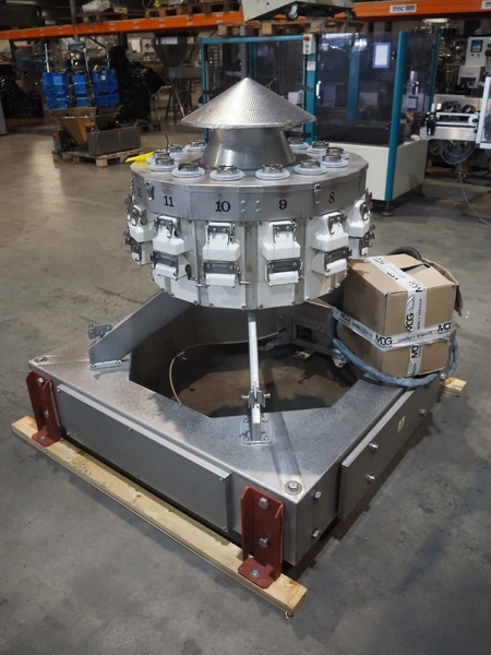 Yamato Scale Gmbh/Dataweigh 14-heads multihead weigher, model: ADW-514SWH, serial number: WG020585, 220-240 V, 1Ph, 50/60 Hz, 10 A, weight range: 20-2000 gram, dimensions: 1350 mm x 1350 mm x 1300 mm. Including 2 pallets with parts.