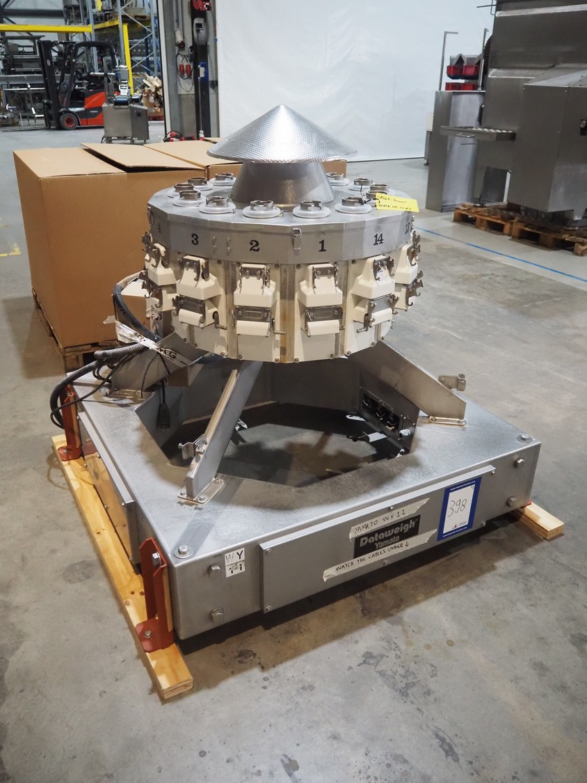 Yamato Scale Gmbh/Dataweigh 14-heads multihead weigher, model: ADW-514SWH, serial number: WG020585, 220-240 V, 1Ph, 50/60 Hz, 10 A, weight range: 20-2000 gram, dimensions: 1350 mm x 1350 mm x 1300 mm. Including 2 pallets with parts.