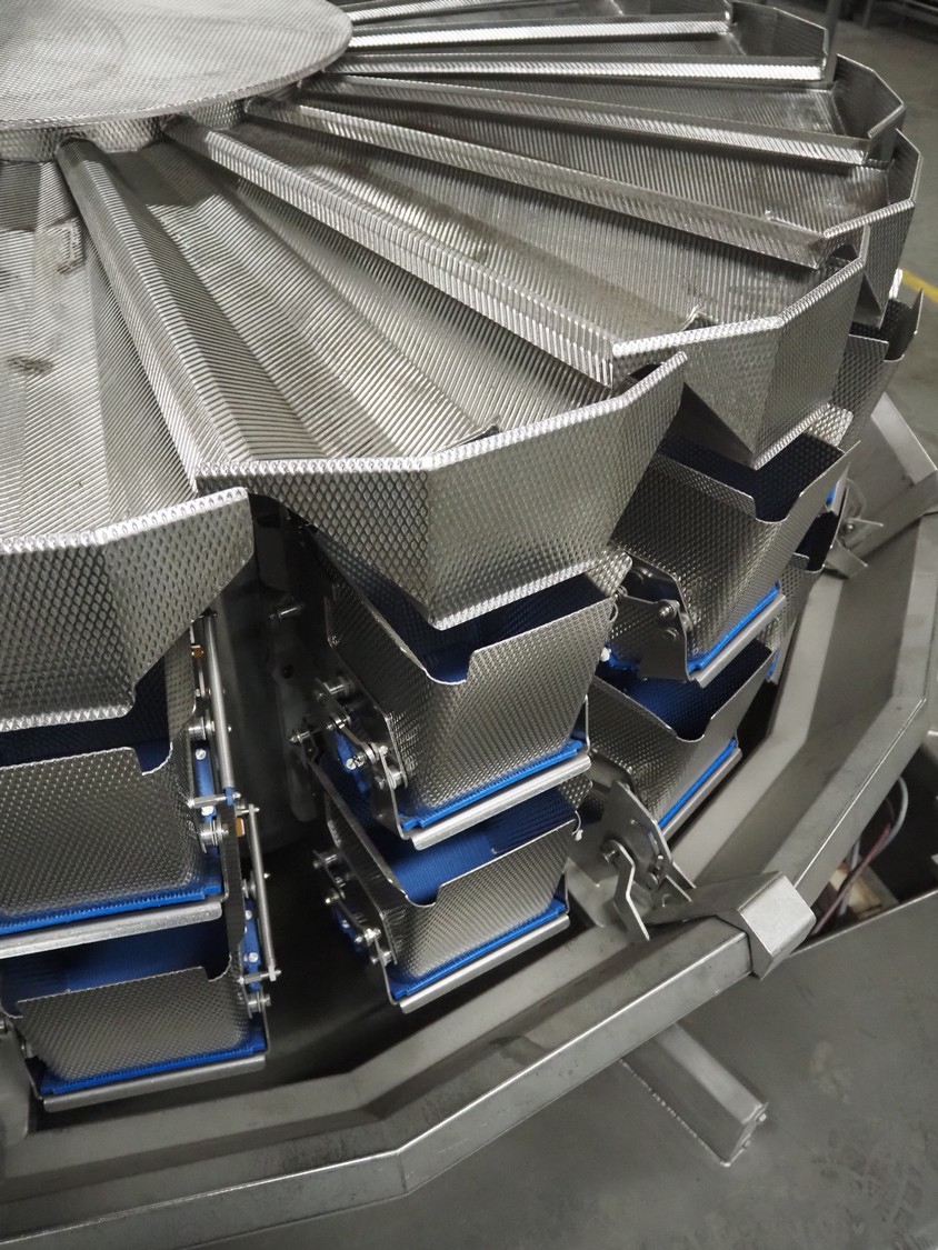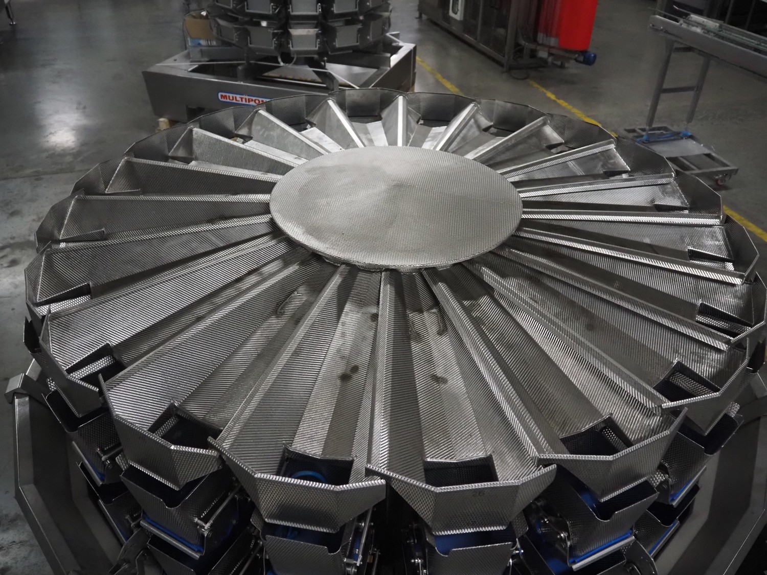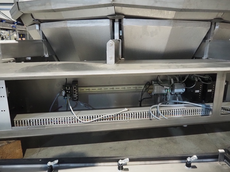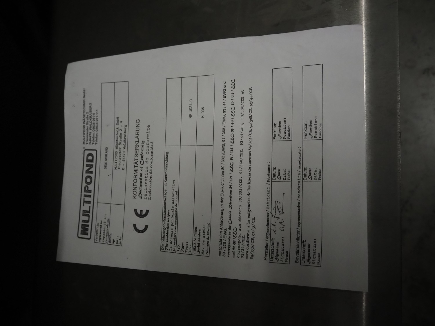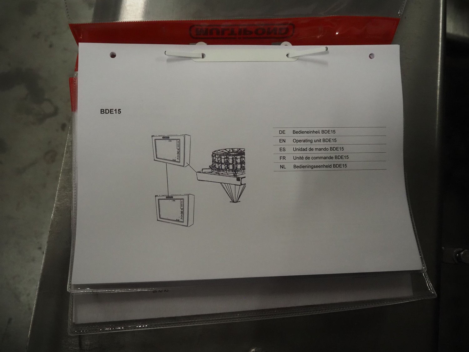 Multipond 20-heads multihead weigher, type: MP 20-3800/1250-H, serial number: M 2718, year of construction: 2011, 416 V, 3 Ph, 50/60 Hz, maximum weight: 3000 gram, minimum weight: 50 gram, e= 0.5 gram, d= 1.0 gram, T= 150 gram, total dimensions: 2600 mm x 2200 mm x 1300 mm.