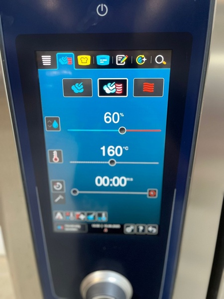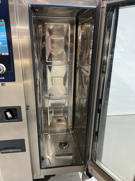 Rational combi steamer, type: iCombi Pro, model: LM100FE.AXXXX, serial number: E21SJ22072985535, year of construction: 2022, 400 V, 3 Ph, 50/60 Hz, 37.2 kW, water pressure: 150-600 kpa, dimensions: 890 mm x 850 mm x 1900 mm. Including trolley.