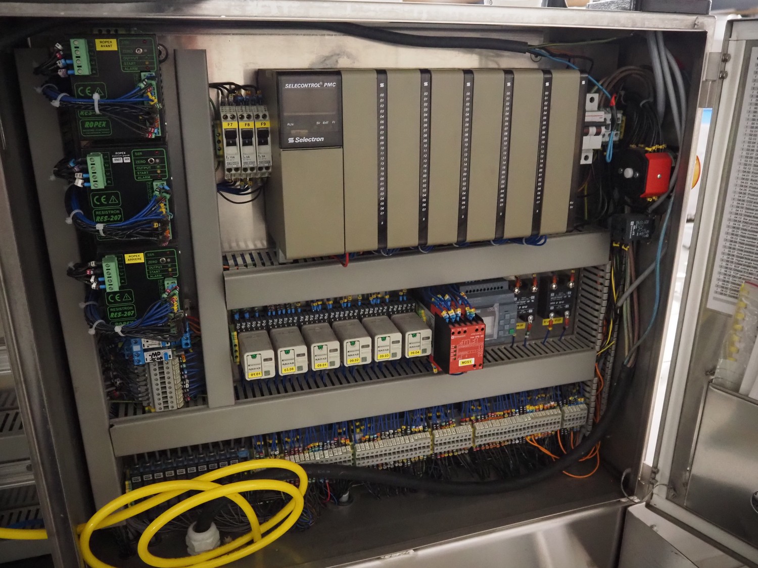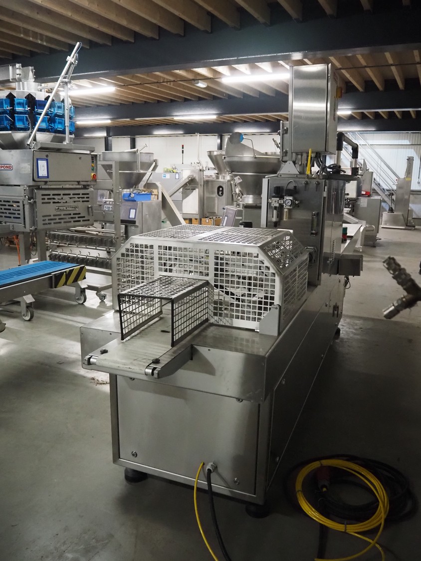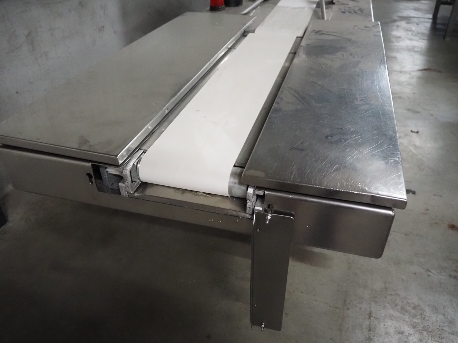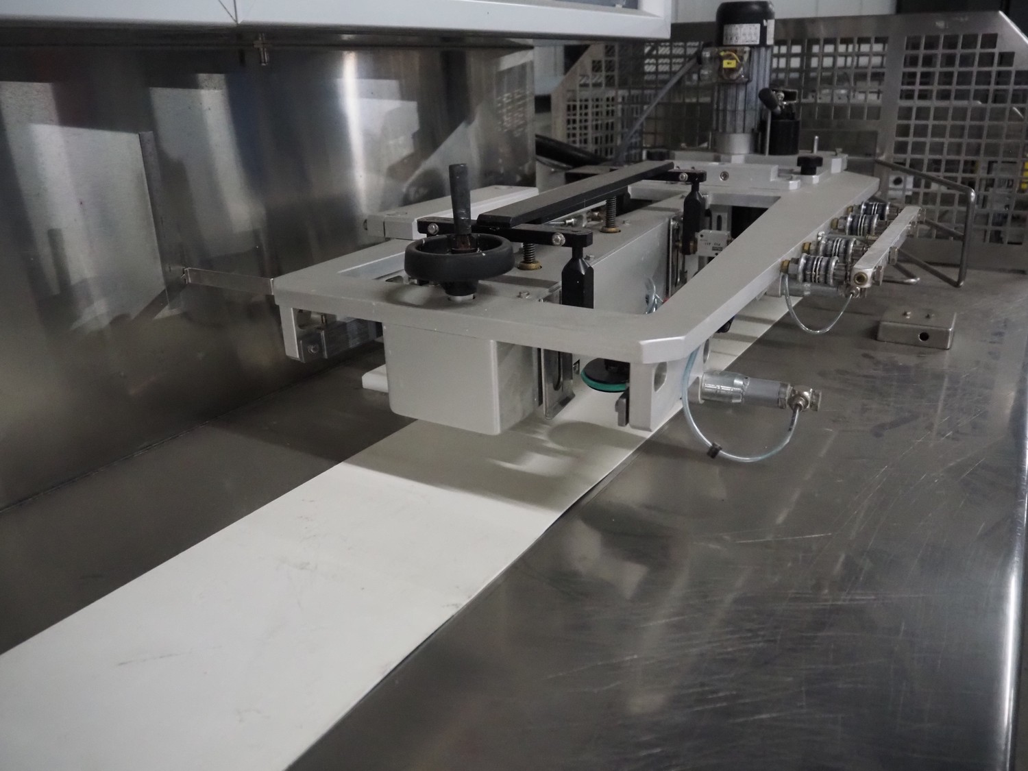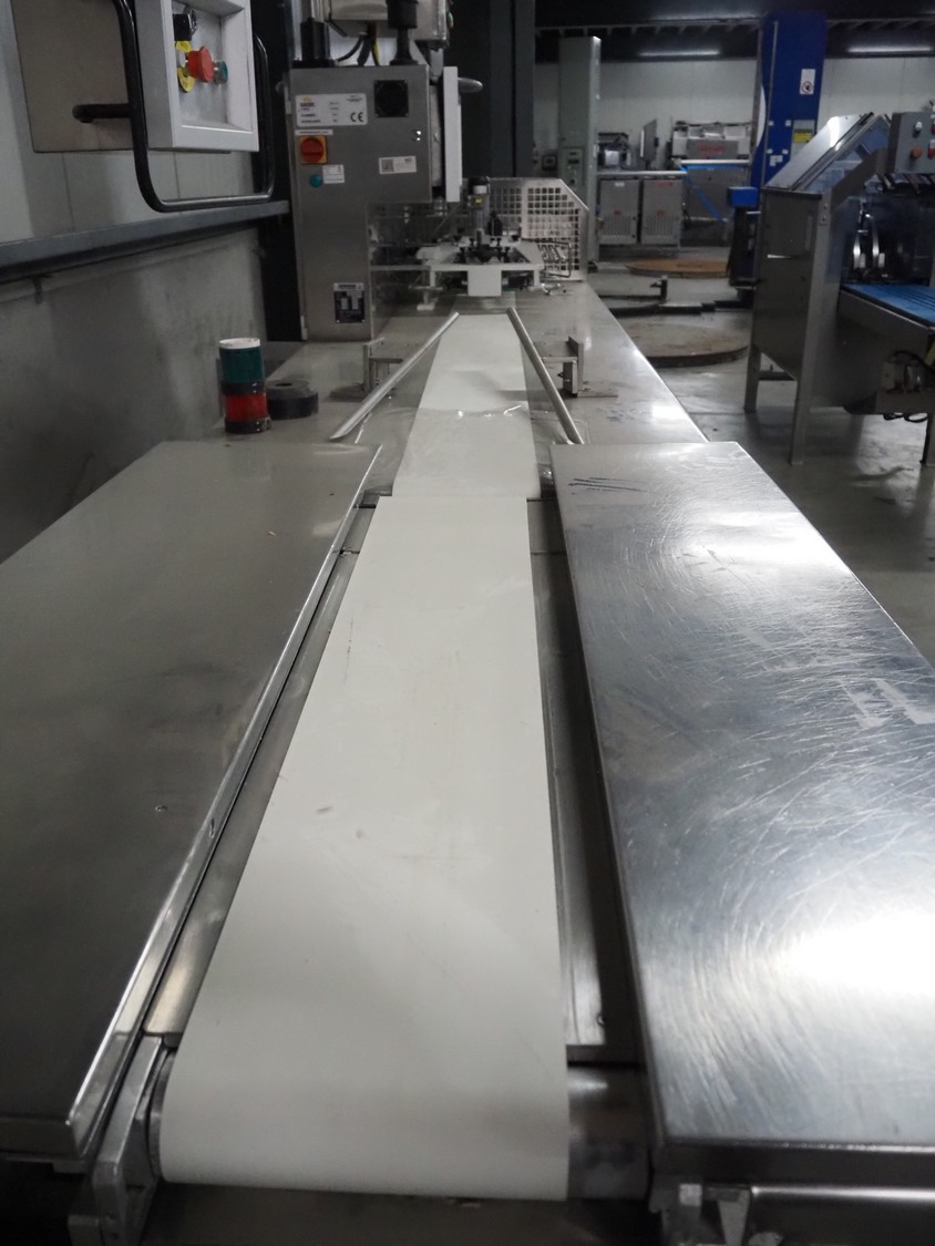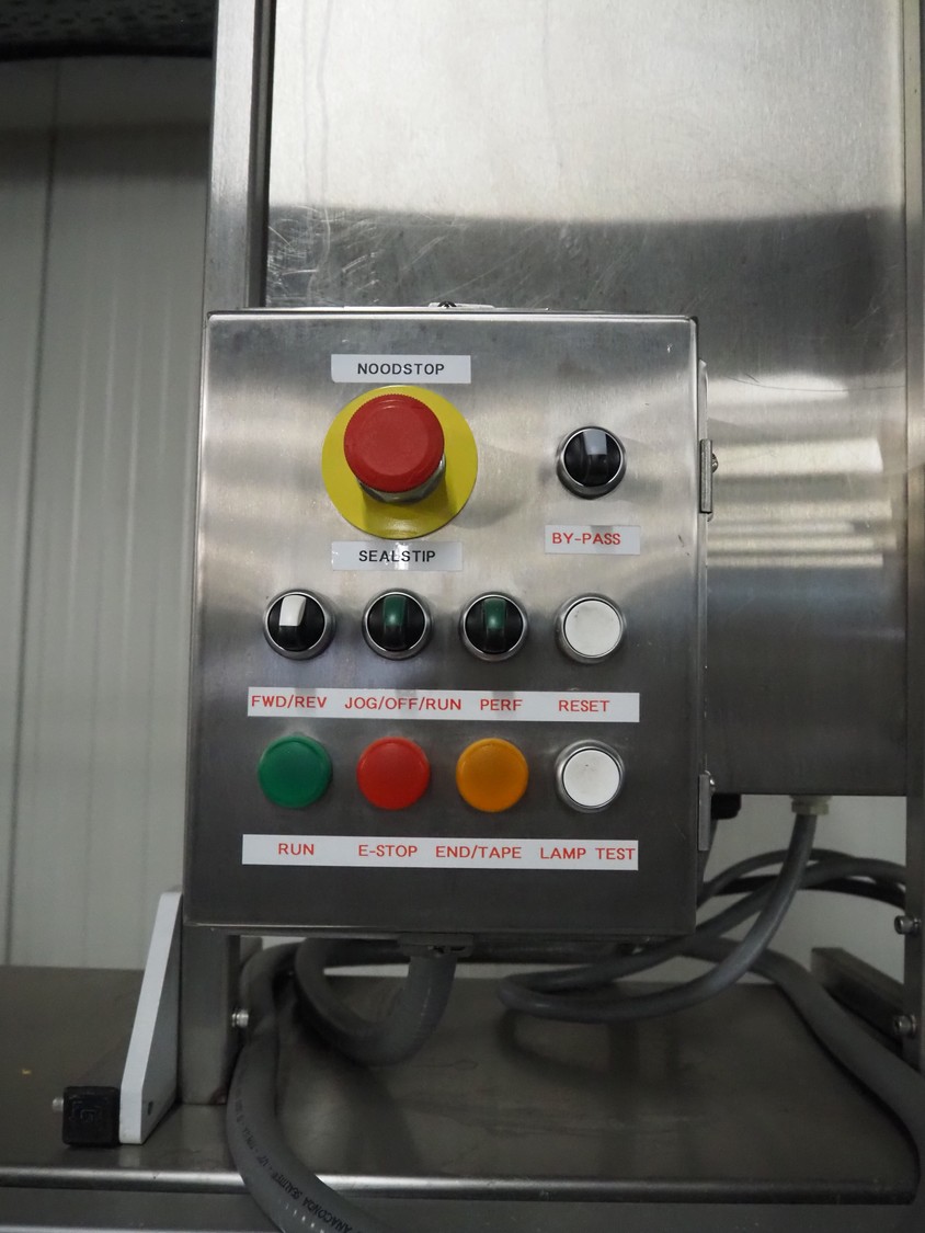 Cryovac horizontal form, fill and seal machine, type: CJ55 MD-BDF, serial number: A91600205, year of construction: 2000, 400 V, 50 Hz, 8 A, 5 kW, plastic belt, belt width: (2x) 200 mm, seal width: 250 mm, clearance: 200 mm x 60 mm, total dimensions: 5000 mm x 1100 mm x 2300 mm.