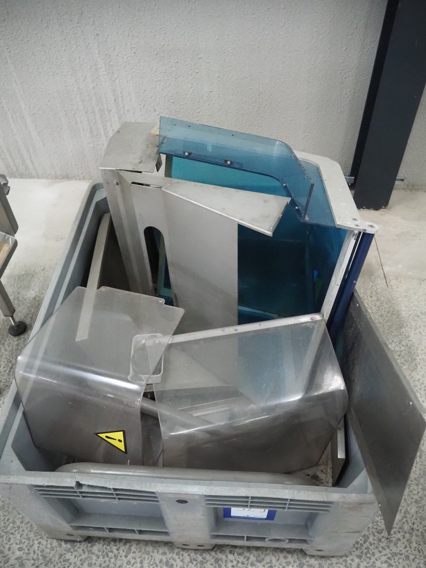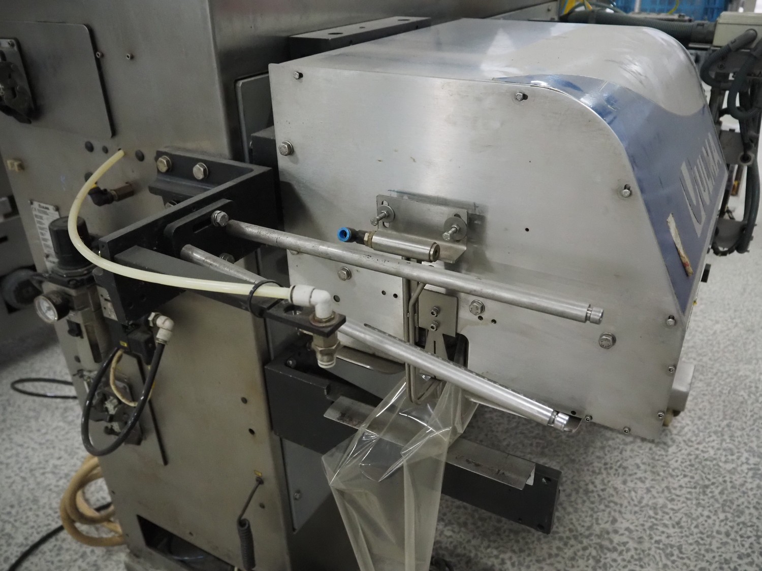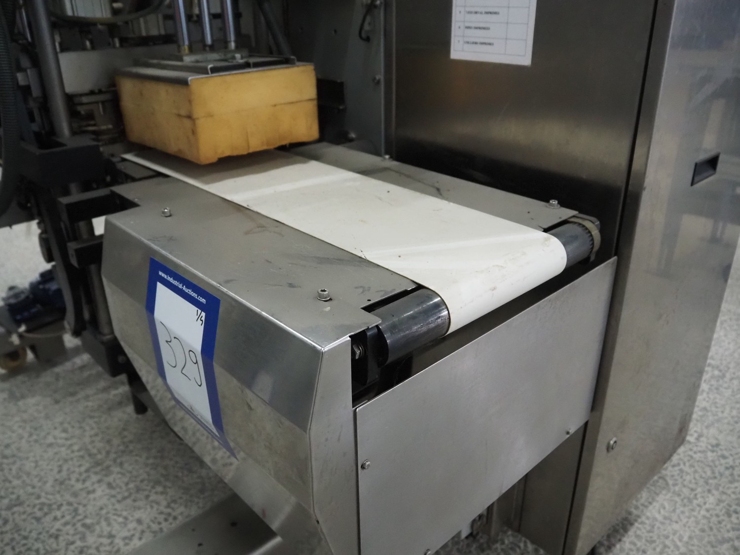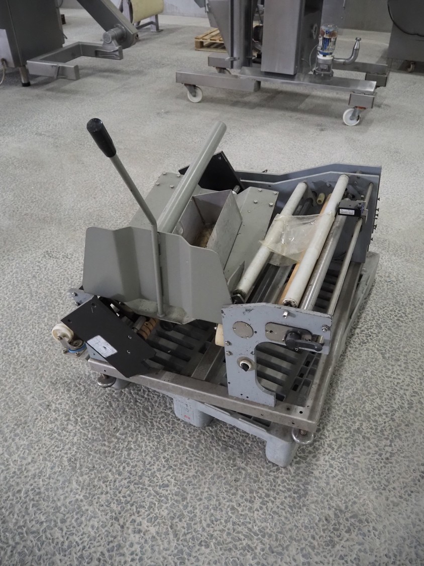 Ulma horizontal form, fill and seal machine, model number: NEVADA-BF-BI, serial number: 1600008, year of construction: 2003, 380 V, 50 Hz, 22 A, 4.6 kW, dimensions machine: 1950 mm x 1050 mm x 1550 mm, infeed belt, dimensions: 2200 mm x 600 mm x 1000 mm. Including pallet box with parts, dimensions: 1200 mm x 1000 mm x 1000 mm and pallet with film unwinding device, dimensions: 1200 mm x 900 mm x 900 mm. Incomplete, technical condition unknown.