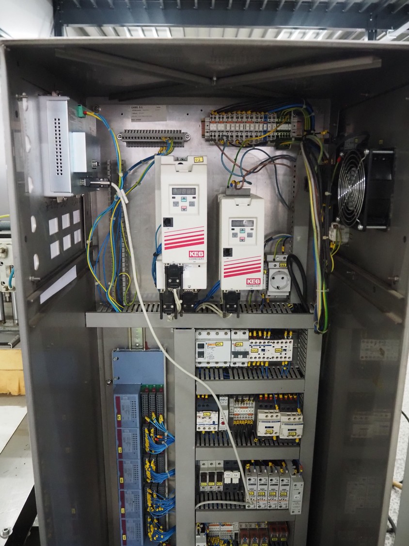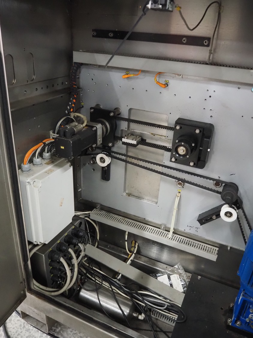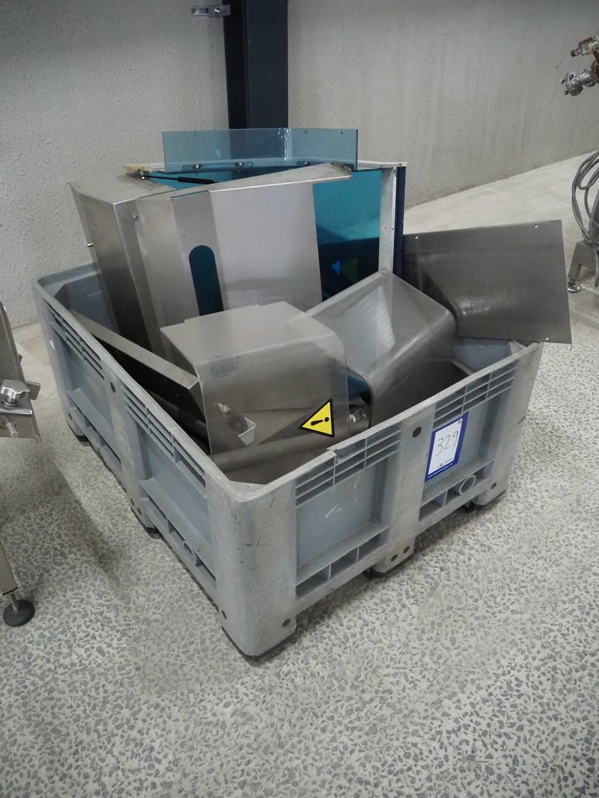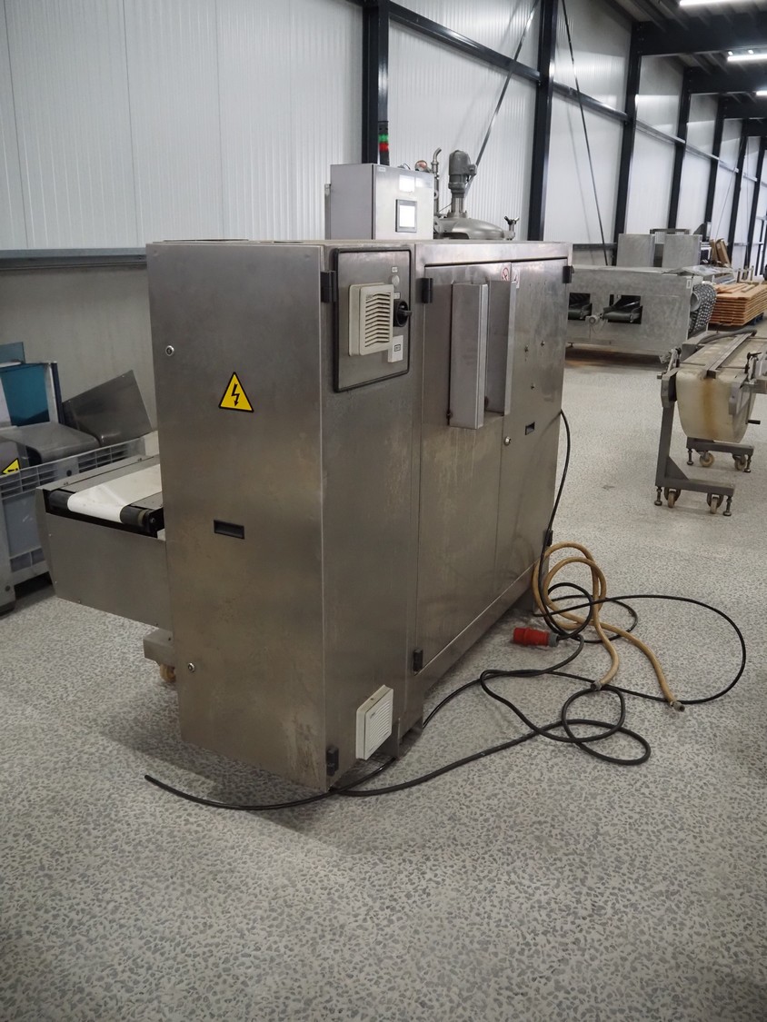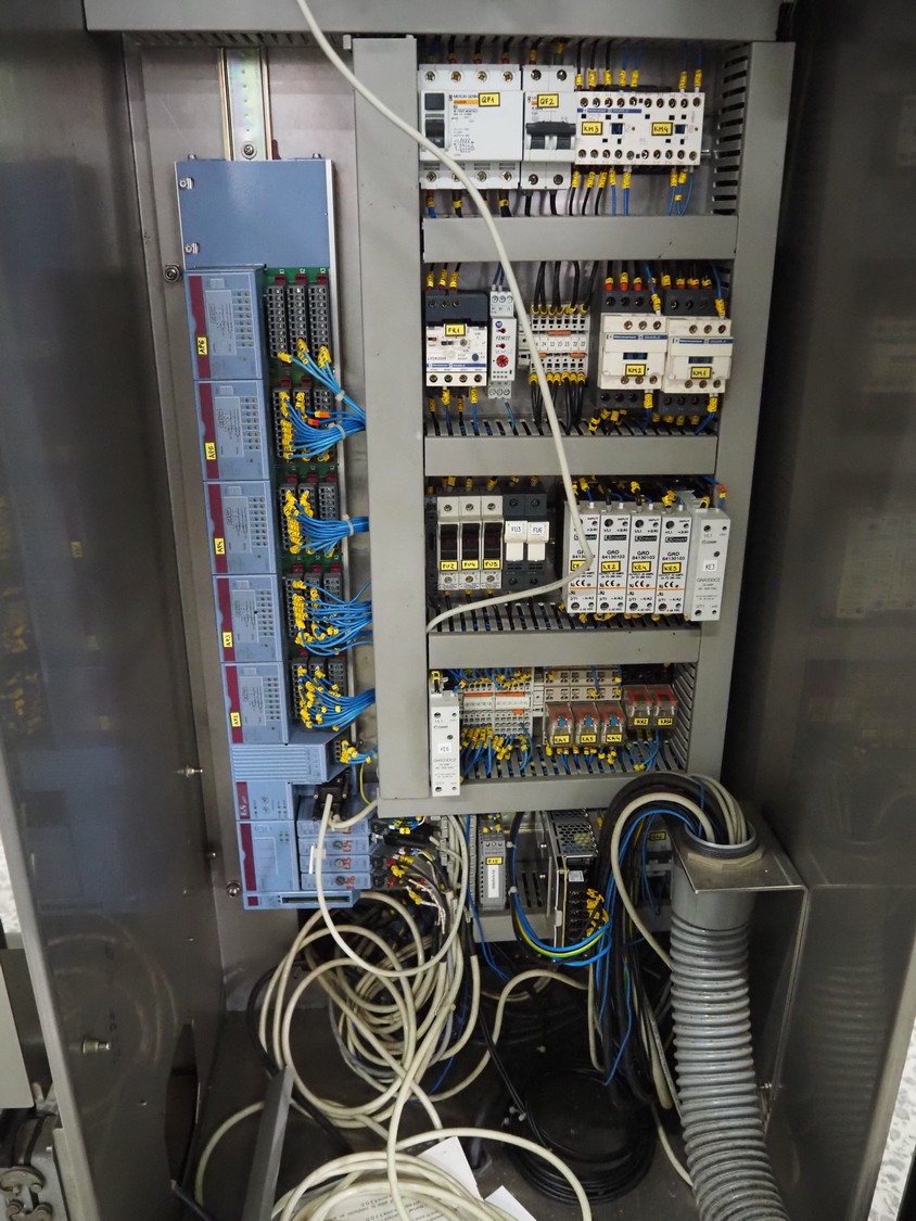 Ulma horizontal form, fill and seal machine, model number: NEVADA-BF-BI, serial number: 1600008, year of construction: 2003, 380 V, 50 Hz, 22 A, 4.6 kW, dimensions machine: 1950 mm x 1050 mm x 1550 mm, infeed belt, dimensions: 2200 mm x 600 mm x 1000 mm. Including pallet box with parts, dimensions: 1200 mm x 1000 mm x 1000 mm and pallet with film unwinding device, dimensions: 1200 mm x 900 mm x 900 mm. Incomplete, technical condition unknown.