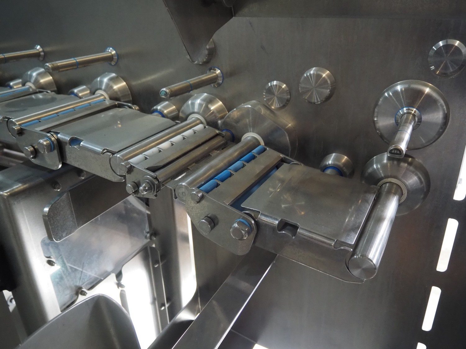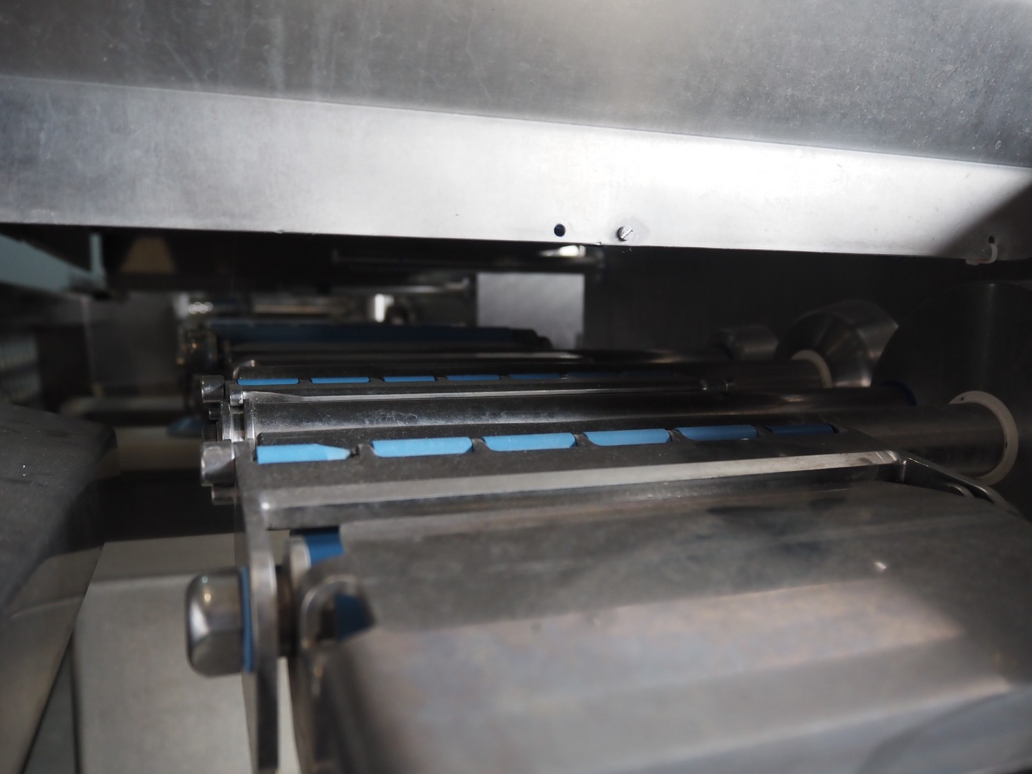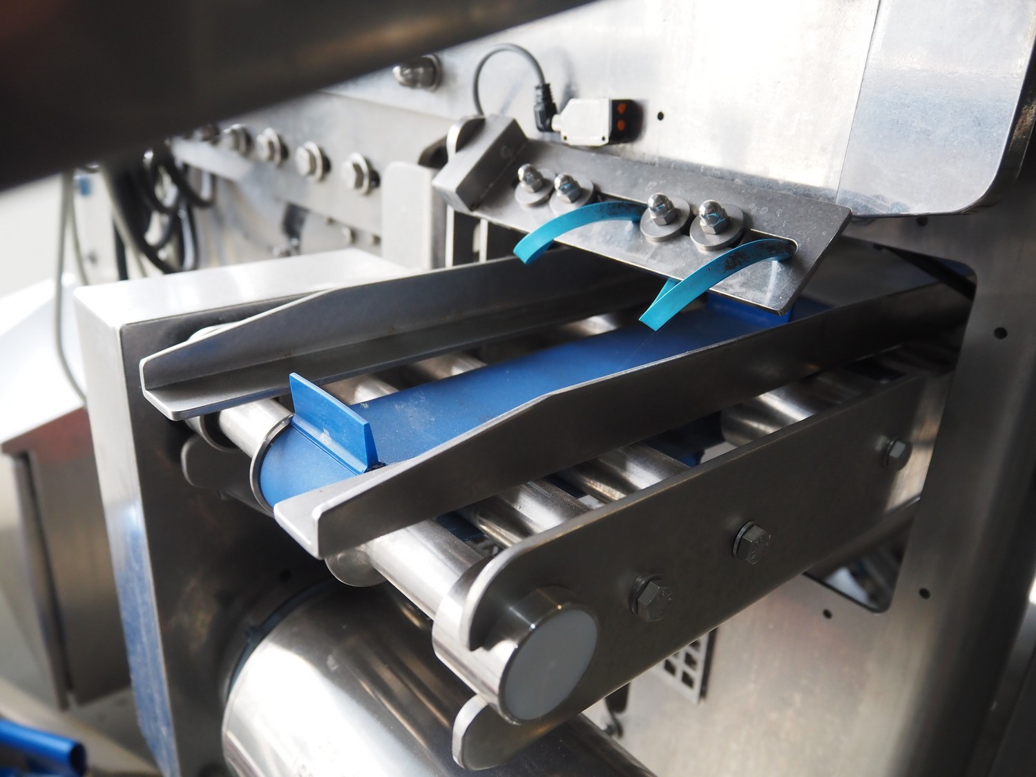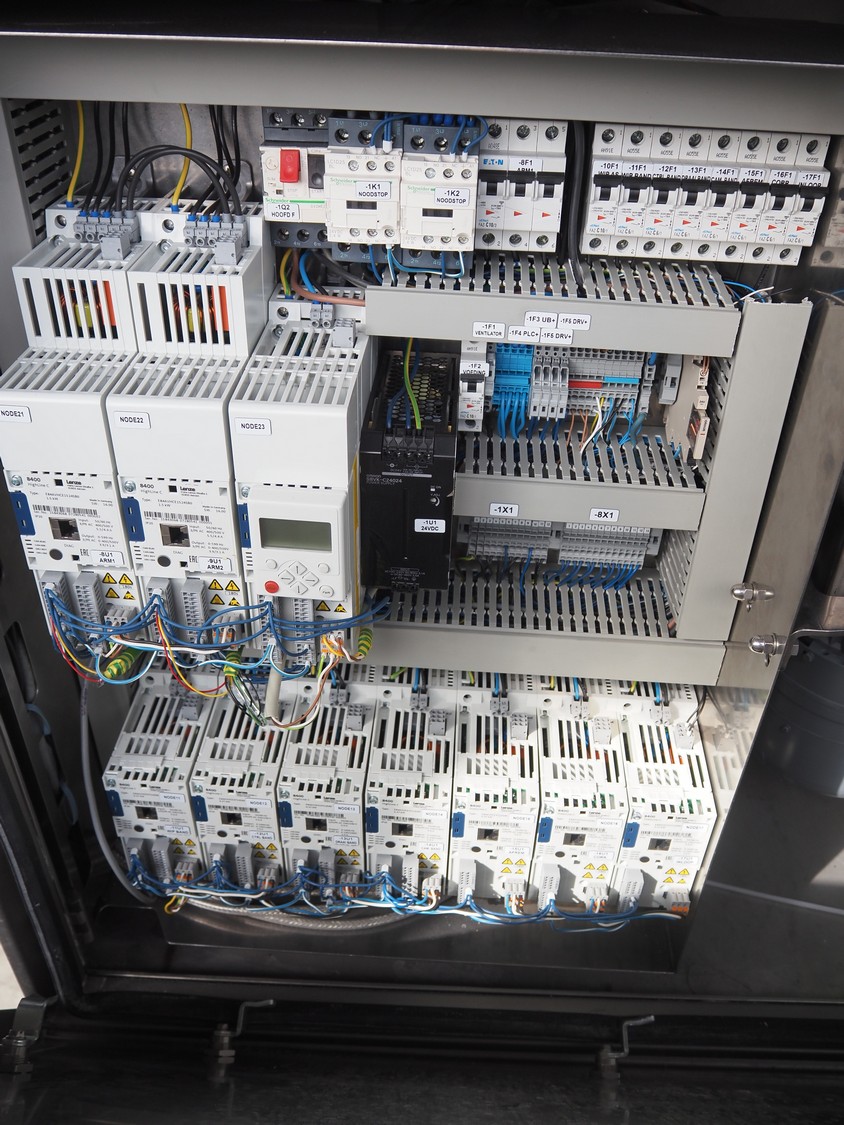 Automation Systems outfeed belt with weighing and sorting line, type: DNT101, year of construction: 2015, 400 V, 3 Ph, 18 A, 7 KW, plastic belt, belt width: 190 mm, 405 and 50 mm, tray dimensions: 175 mm x 125 mm, distance between dividers: 245 mm, total dimensions: 5750 mm x 2000 mm x 2150 mm.