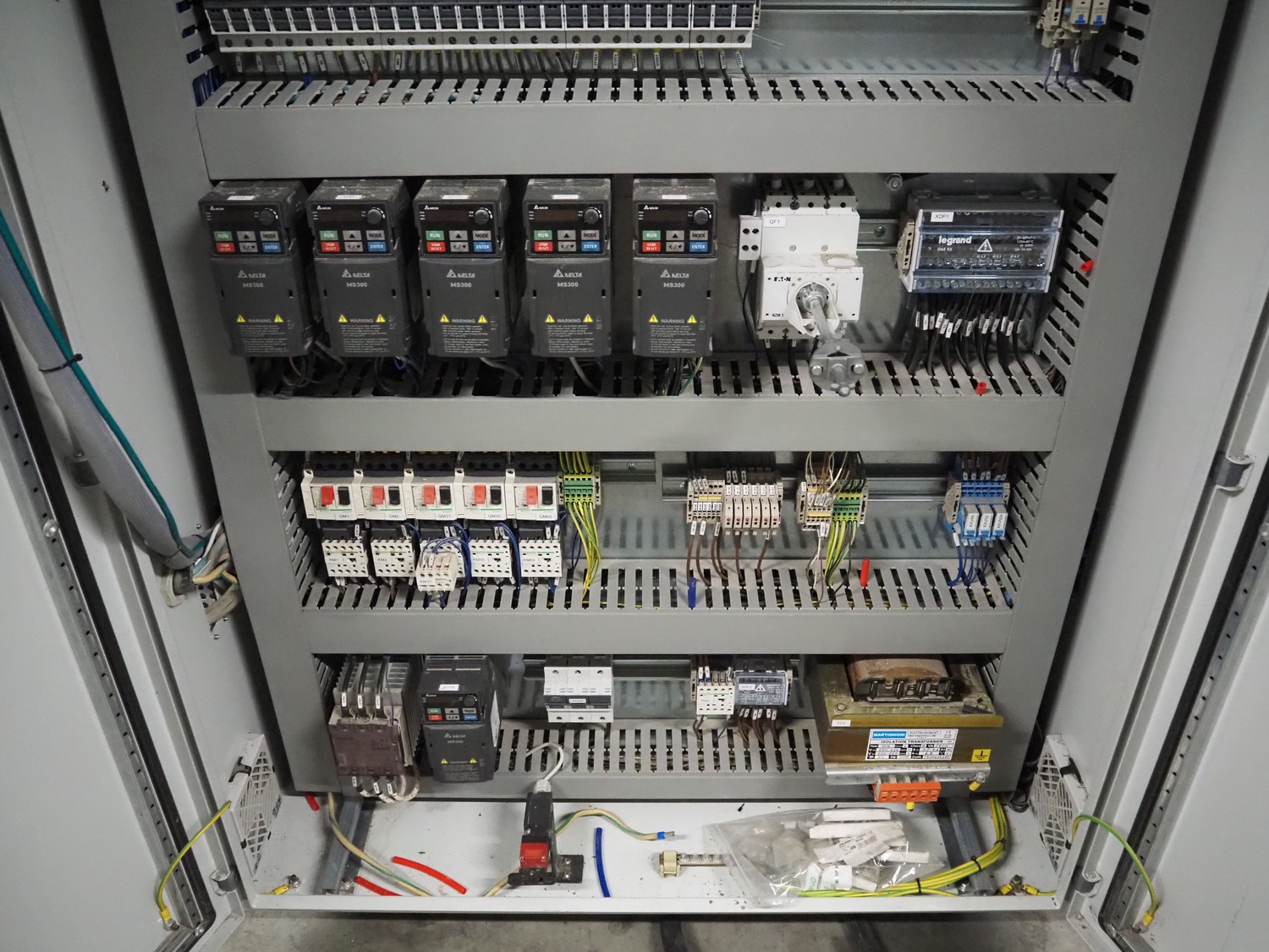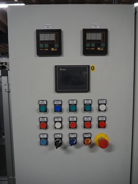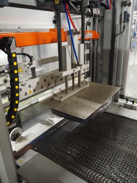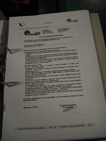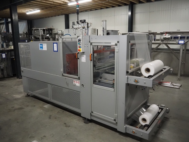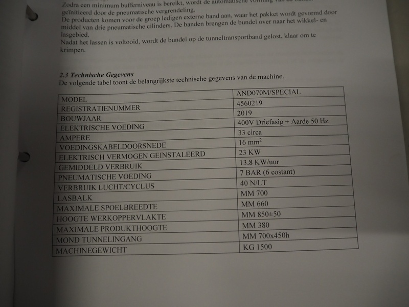 Novopac s.r.l. sleeve wrapper and shrinking machine, type: AND 070M-SP, serial number: 4560219, year of construction: 2019, 400 V, 50 Hz, 6 A, 23 kW, plastic infeed belt, belt width: 350 mm, film width: 550 mm, belt width shrinking tunnel: 600 mm, clearance: 770 mm x 480 mm, total dimensions: 4100 mm x 1500 mm x 2650 mm.