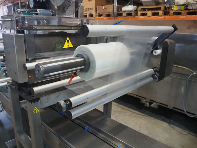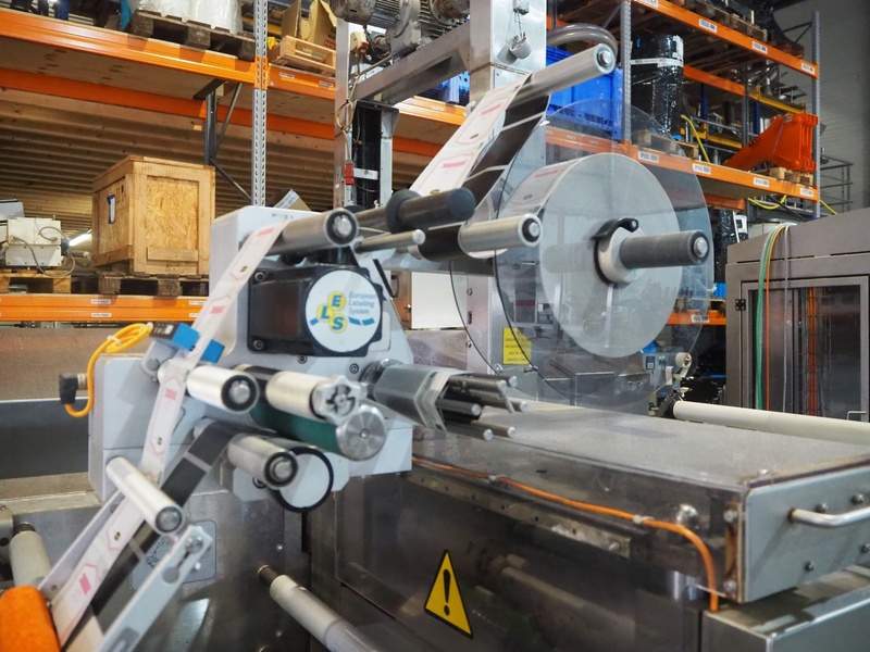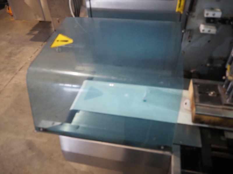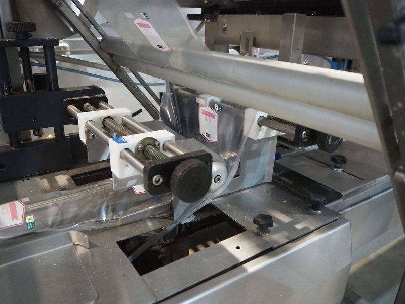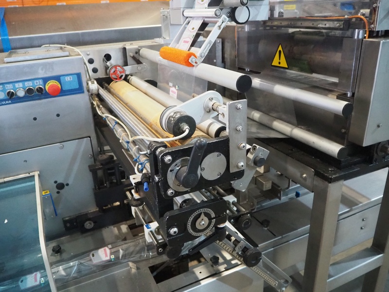Ulma mobile flowpacker, model: Nevada BS, number: 130052, year of construction: 2003, 380 V, 50 Hz, 23 A, 5 kW, ELS labelling machine, infeed belt with dividers, belt width: 150 mm, distance between dividers: 300 mm, divider height: 30 mm, seal width: 300 mm, total dimensions: 4500 mm x 1300 mm x 1150 mm.