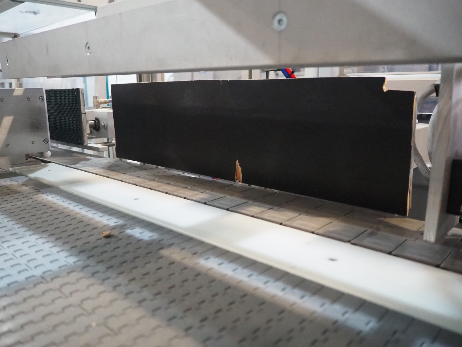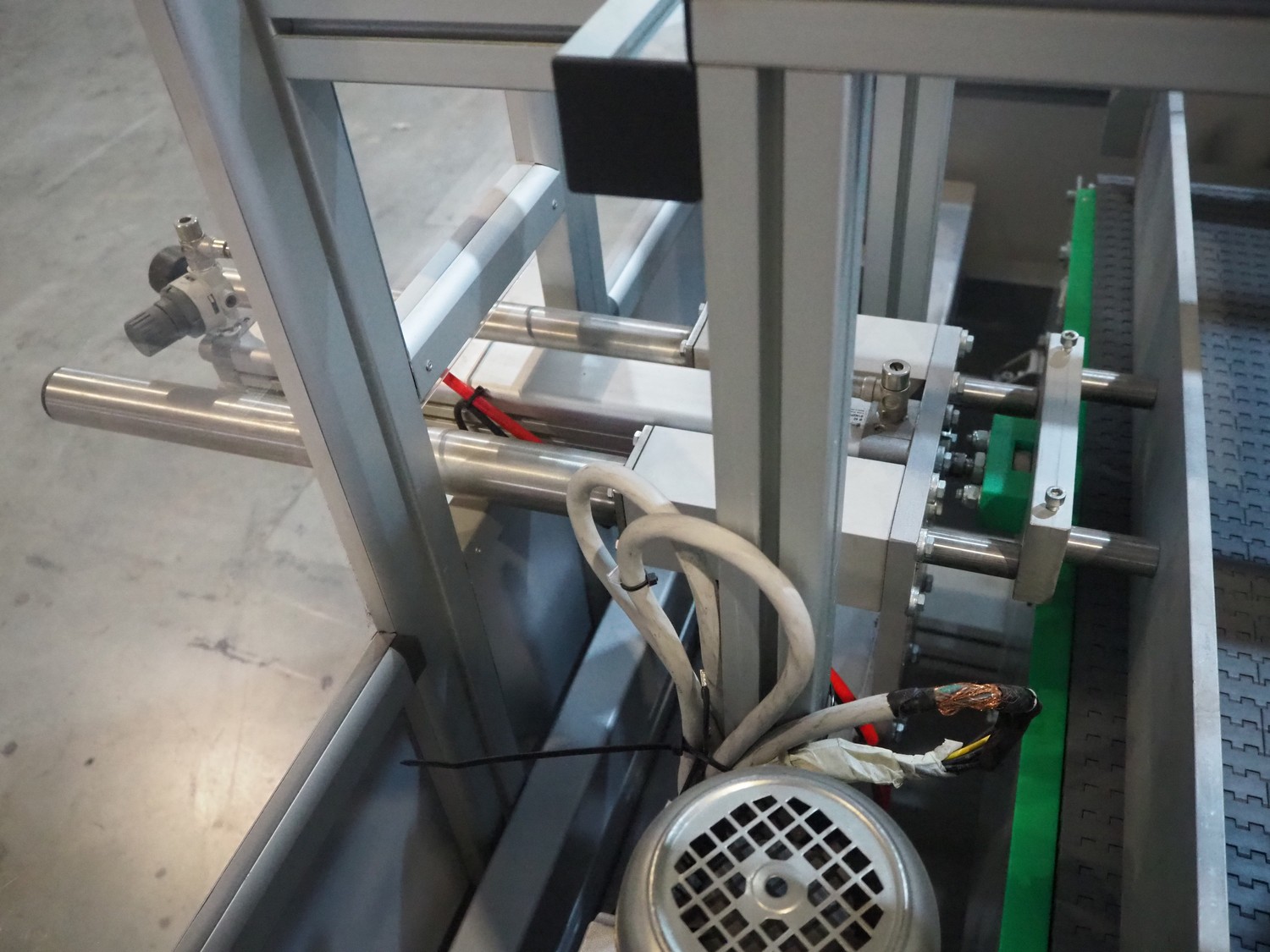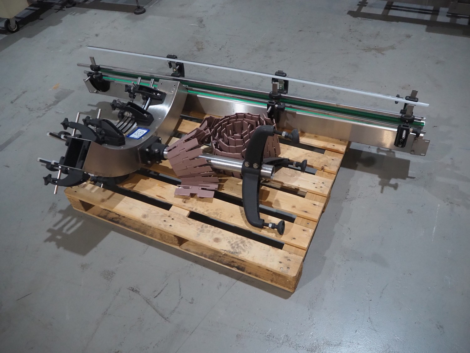 Novopac s.r.l. bundling machine, plastic belt, belt width: 360 mm and 100 mm, total dimensions: 3200 mm x 1400 mm x 1850 mm. With pallet with infeed belt.