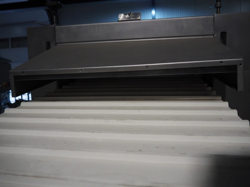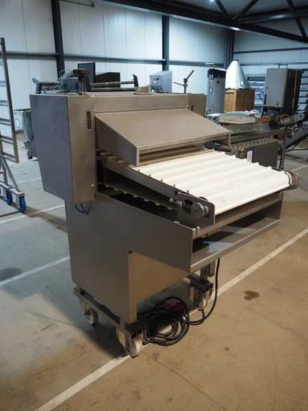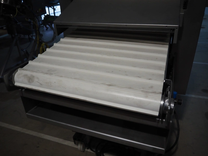 Myac mobile curing press, type: 650, machine number: 3002 636, year of construction: 1983, 380 V, 50 Hz, 0.75 kw, 6 bar, plastic belt, belt width: 650 mm, total dimensions: 1650 mm x 1000 mm x 1600 mm.