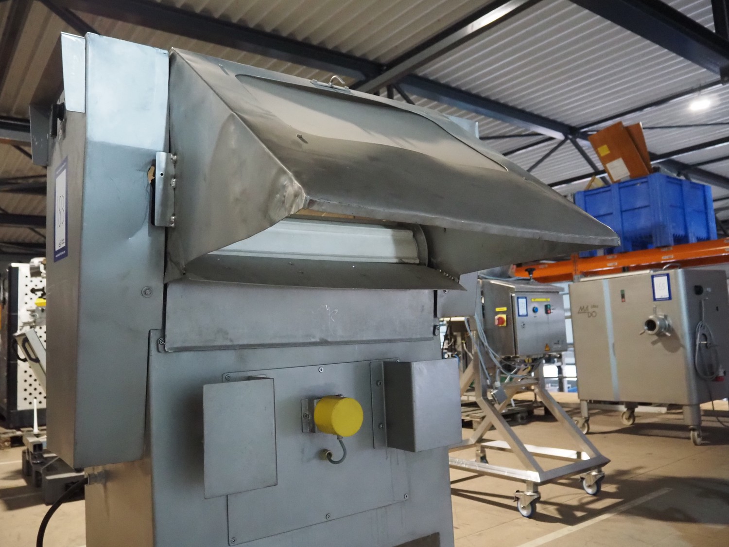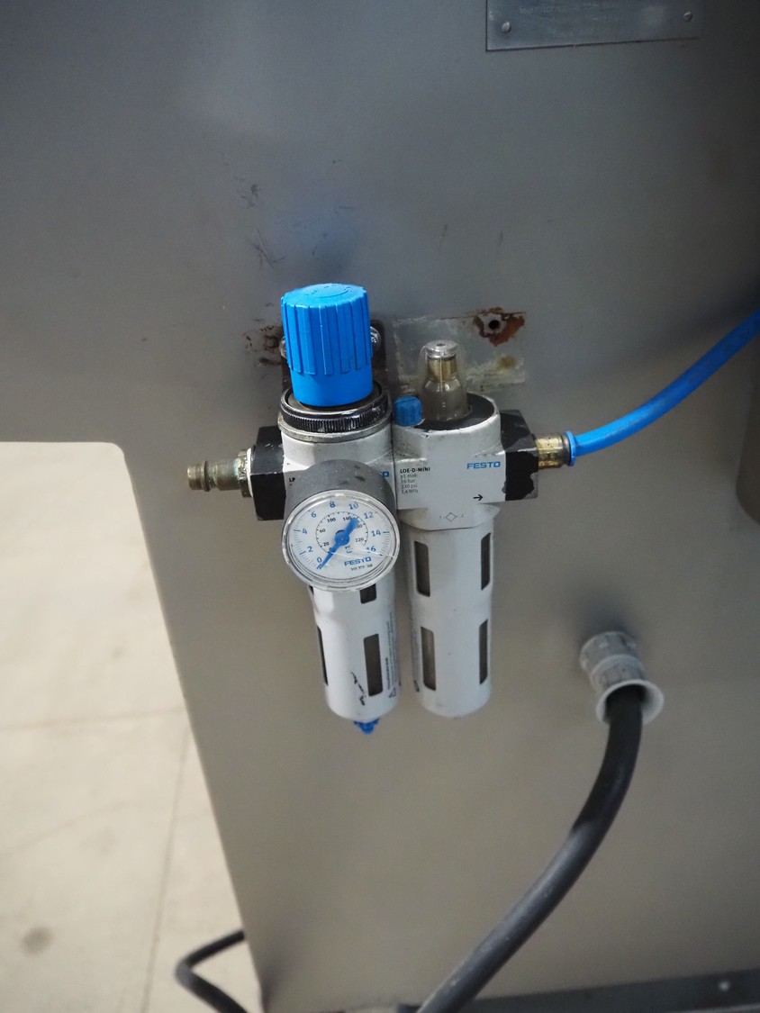 Myac mobile curing press, type: 650, machine number: 3002 636, year of construction: 1983, 380 V, 50 Hz, 0.75 kw, 6 bar, plastic belt, belt width: 650 mm, total dimensions: 1650 mm x 1000 mm x 1600 mm.