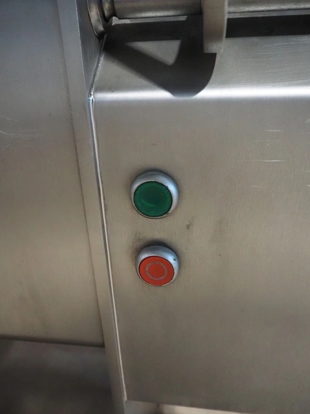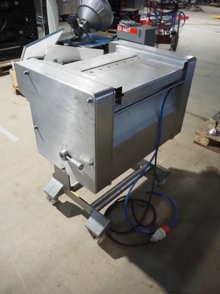 Weber GmbH & Co. KG mobile skinning machine, type: A-VI 520, number: 622, year of construction: 2004, 400 V, 50 Hz, 0.37 kW, weight: 210 kg, working width: 515 mm, total dimensions: 860 mm x 600 mm x 1000 mm.