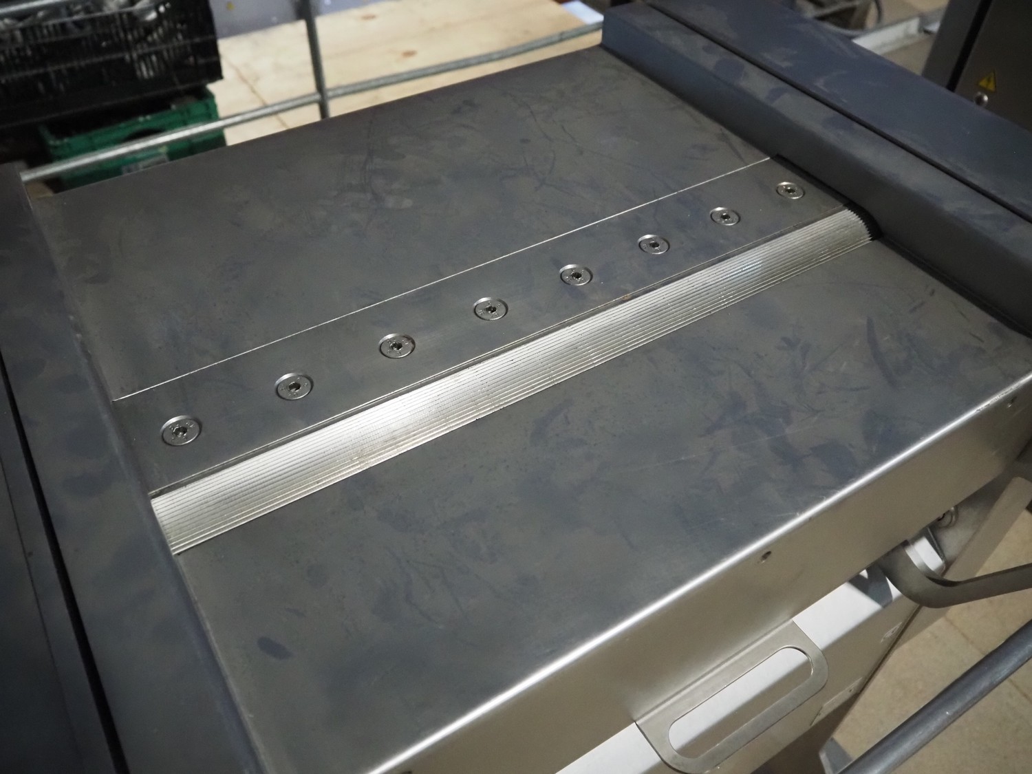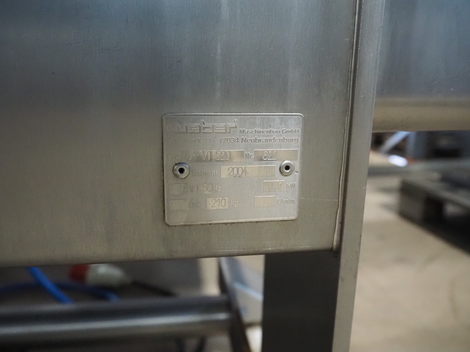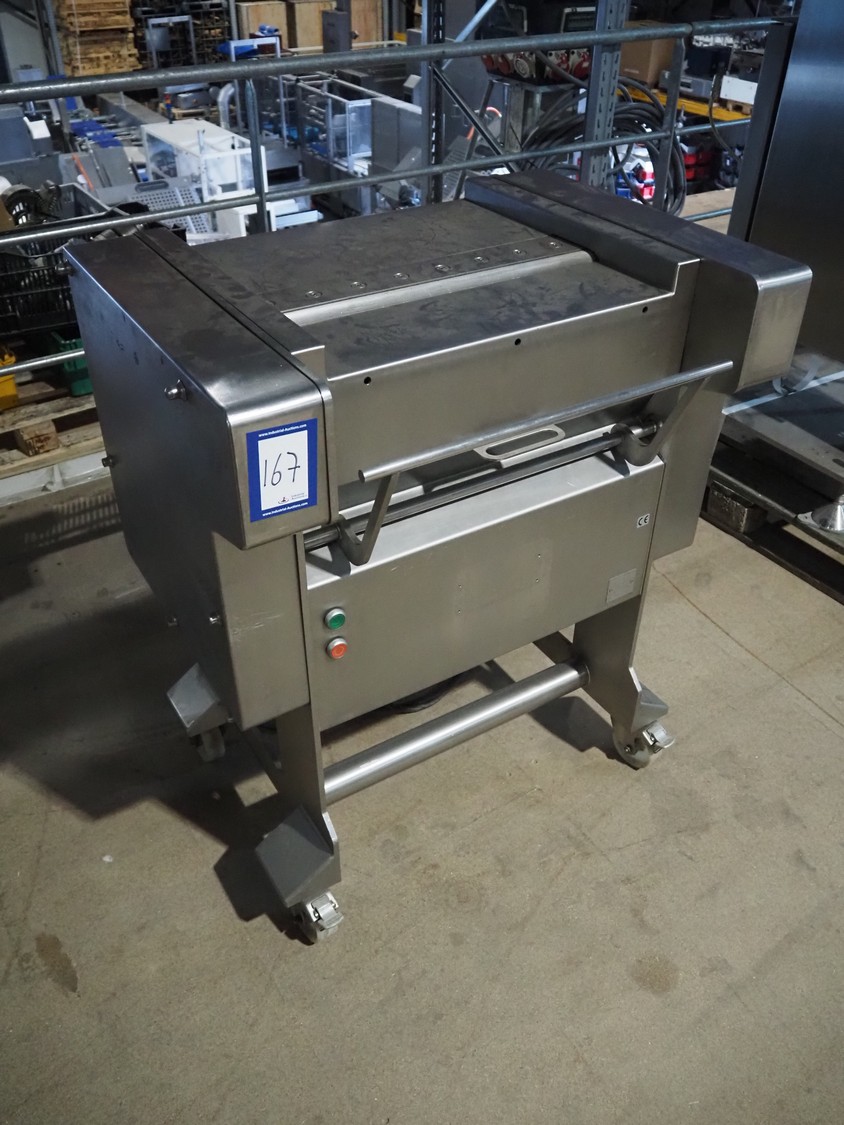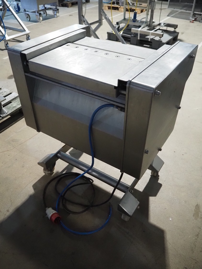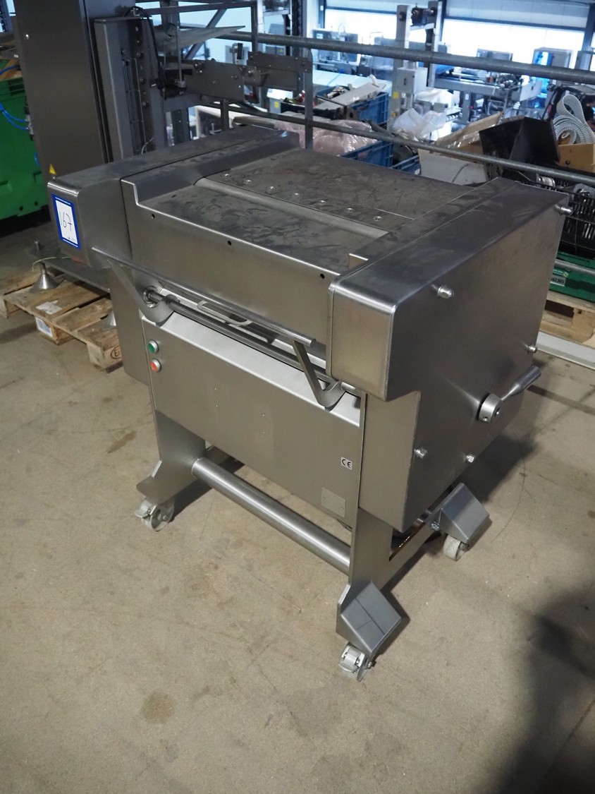 Weber GmbH & Co. KG mobile skinning machine, type: A-VI 520, number: 622, year of construction: 2004, 400 V, 50 Hz, 0.37 kW, weight: 210 kg, working width: 515 mm, total dimensions: 860 mm x 600 mm x 1000 mm.