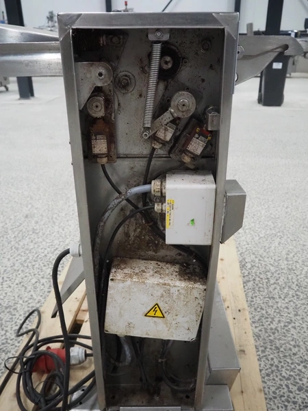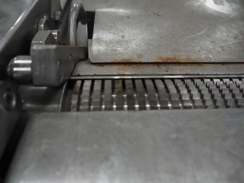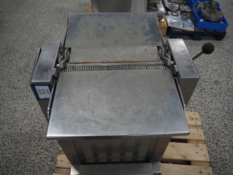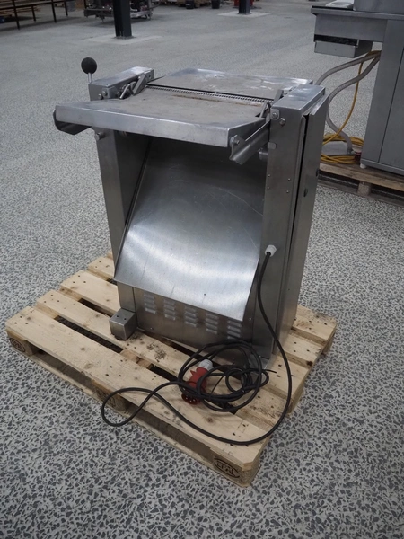 Skinning machine, working width: 435 mm, foot control, total dimensions: 700 mm x 800 mm x 1000 mm.