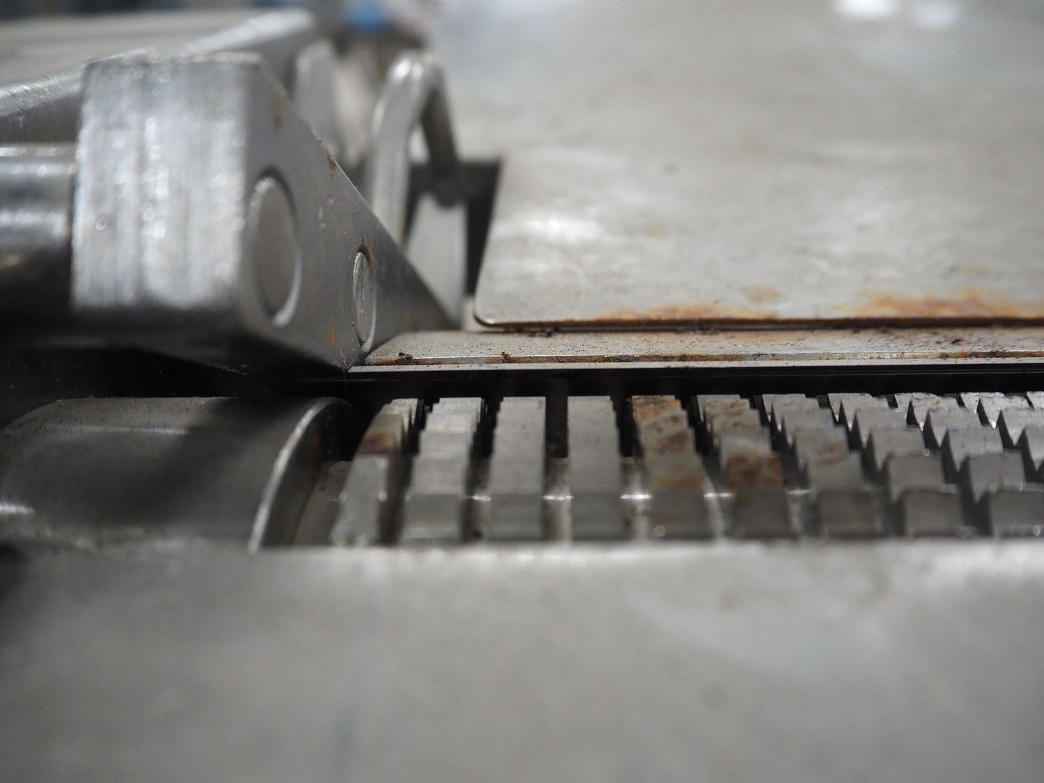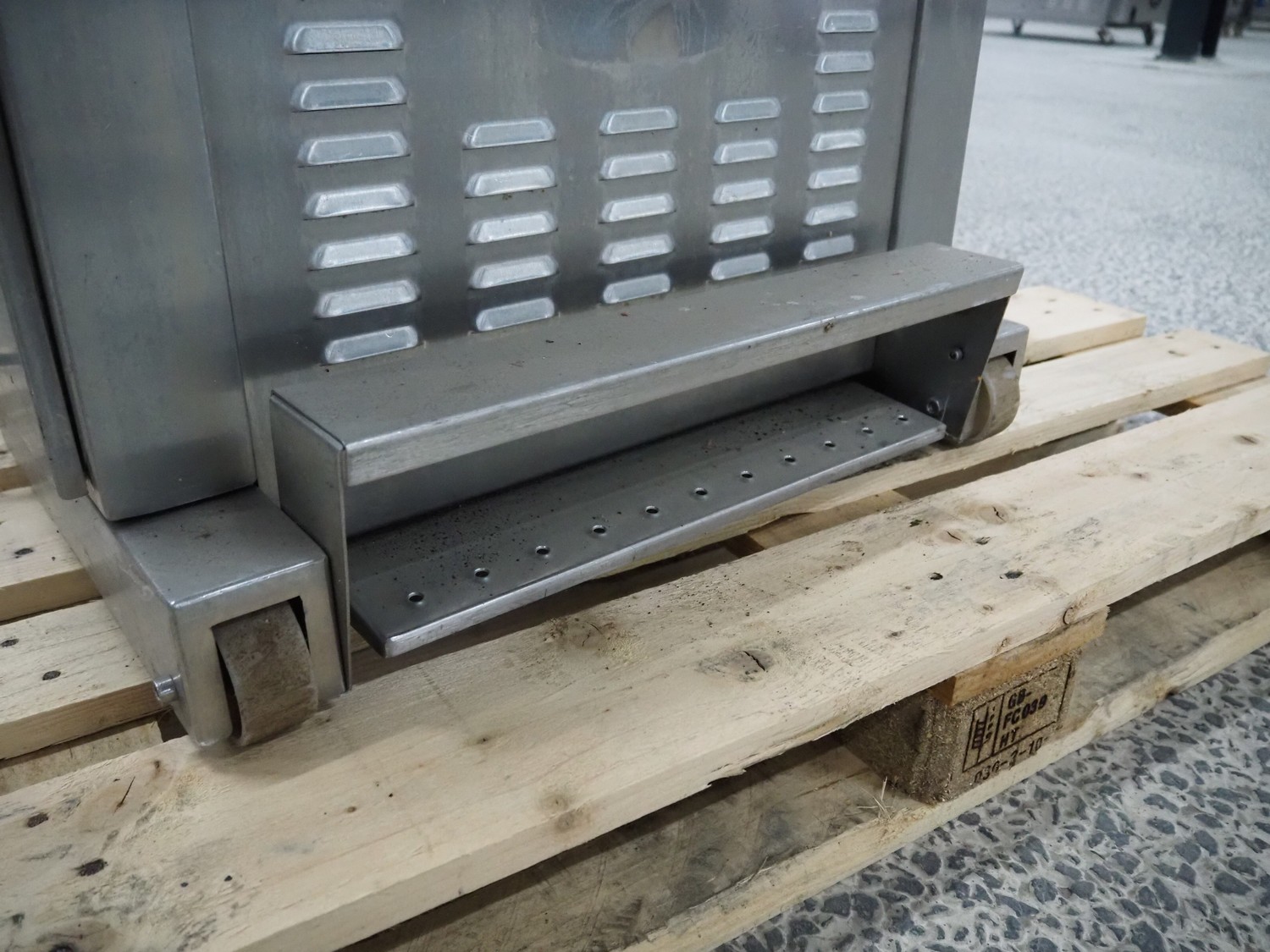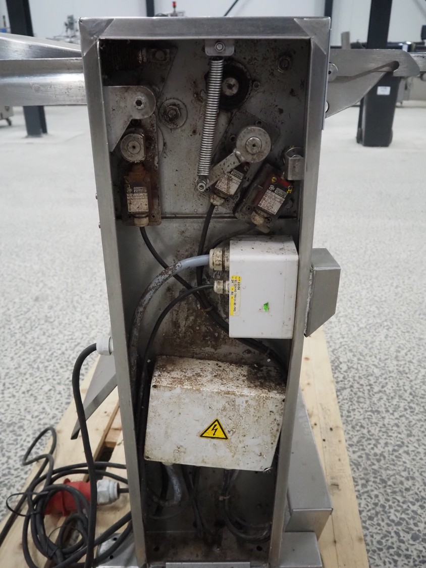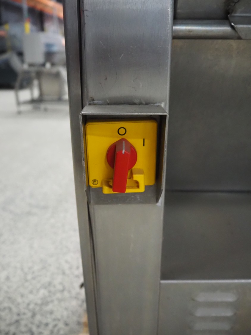 Skinning machine, working width: 435 mm, foot control, total dimensions: 700 mm x 800 mm x 1000 mm.