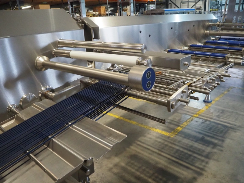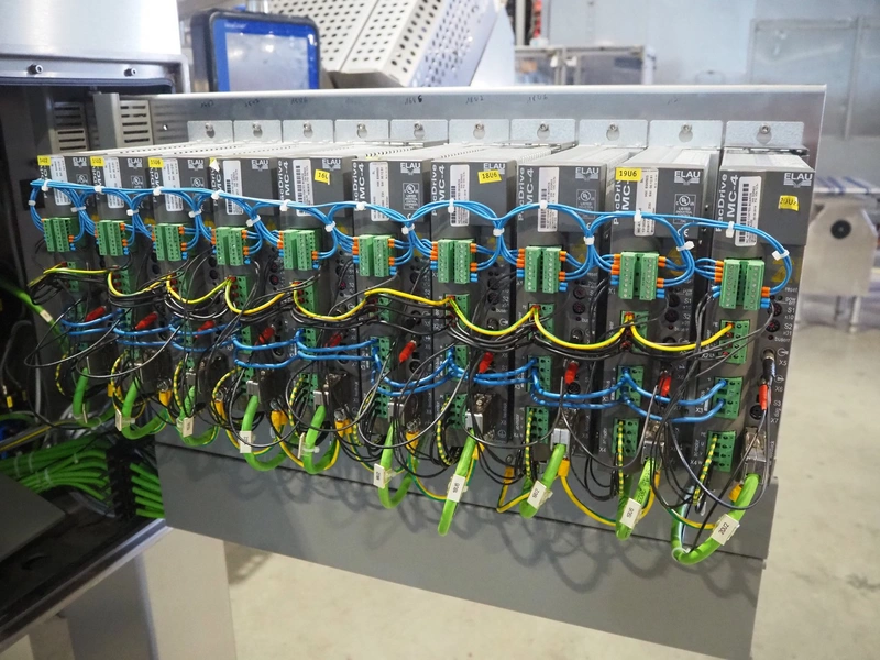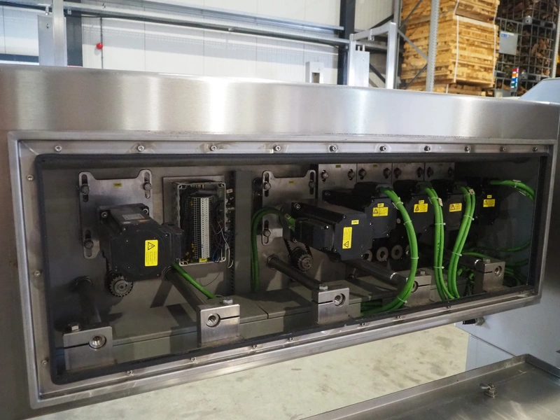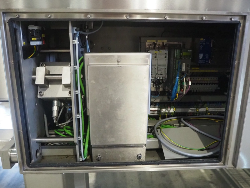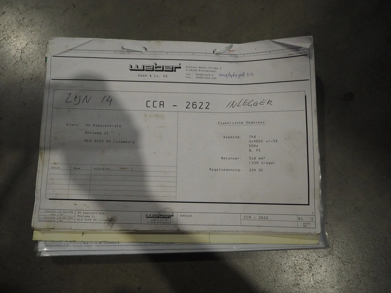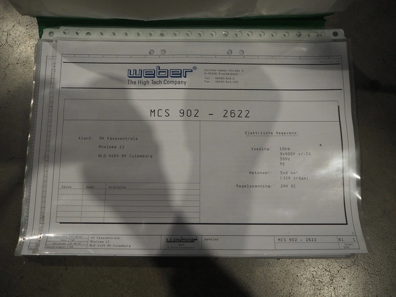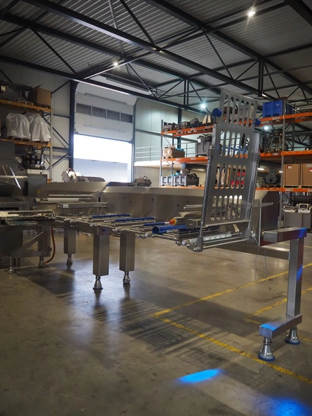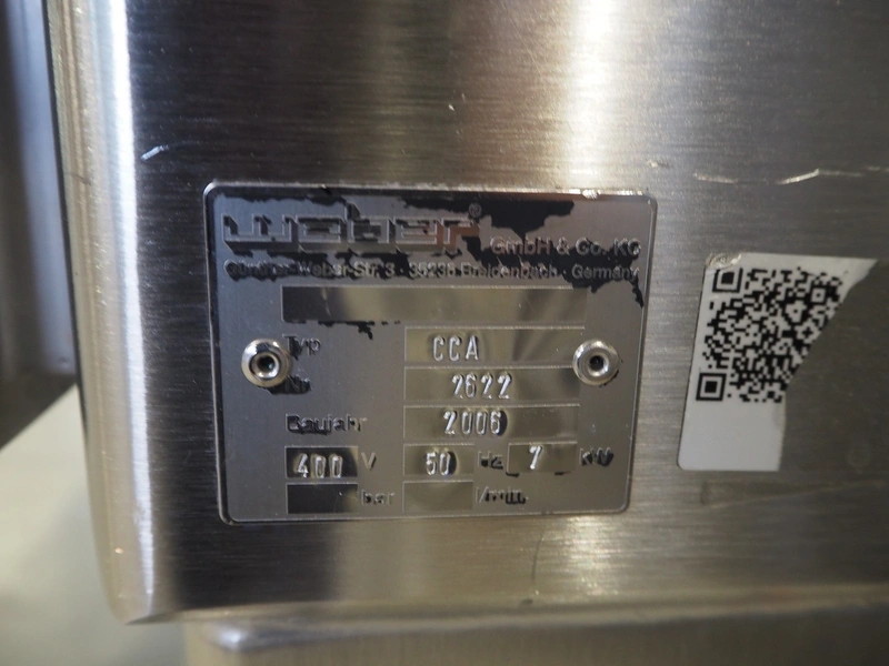 Weber outfeed belt, type: CCA, number: 2622, year of construction: 2006, 400 V, 50 Hz, 7 kW, plastic wired belt, belt width: 520 mm, total dimensions: 5370 mm x 1800 mm x 1800 mm.