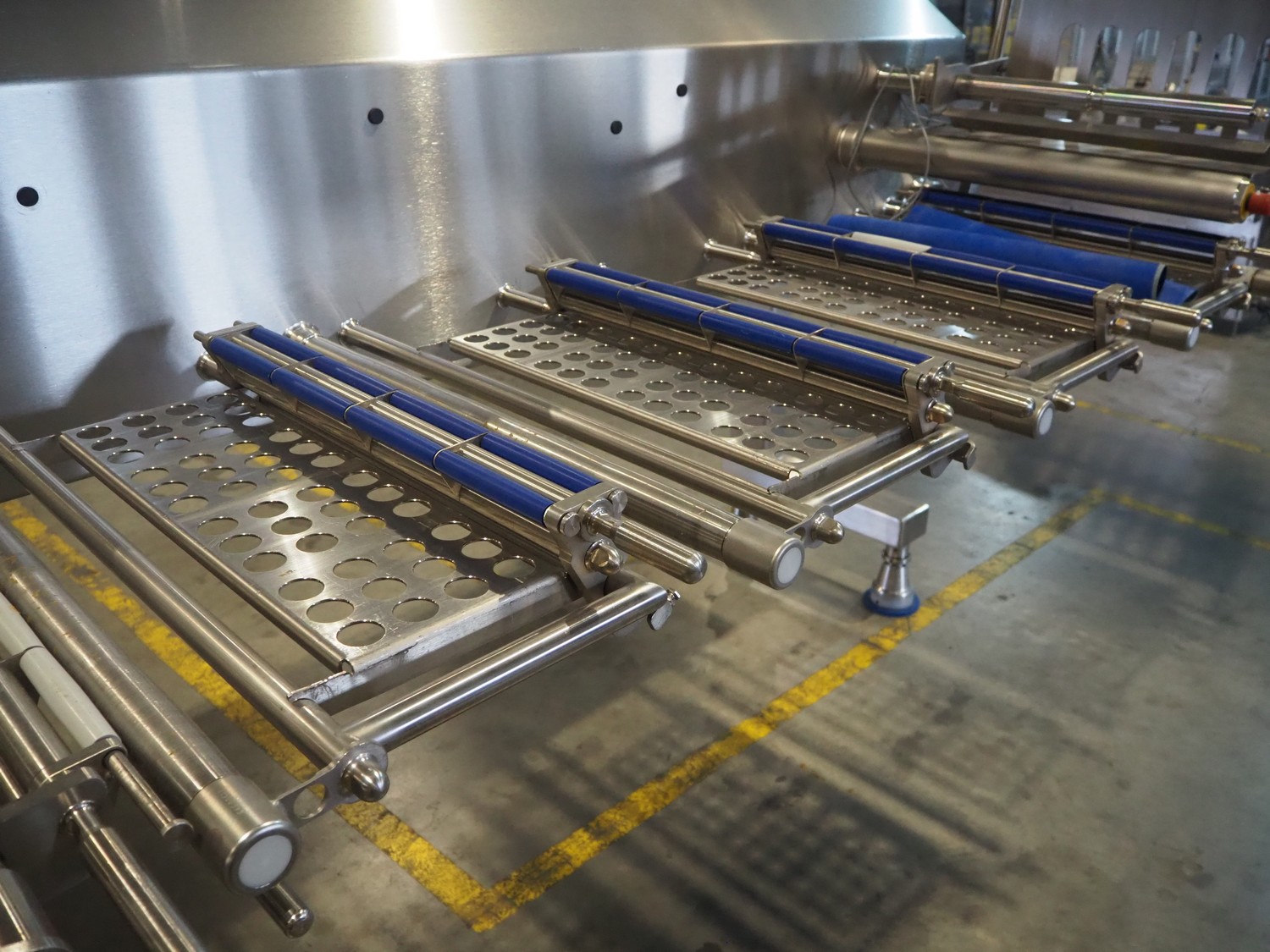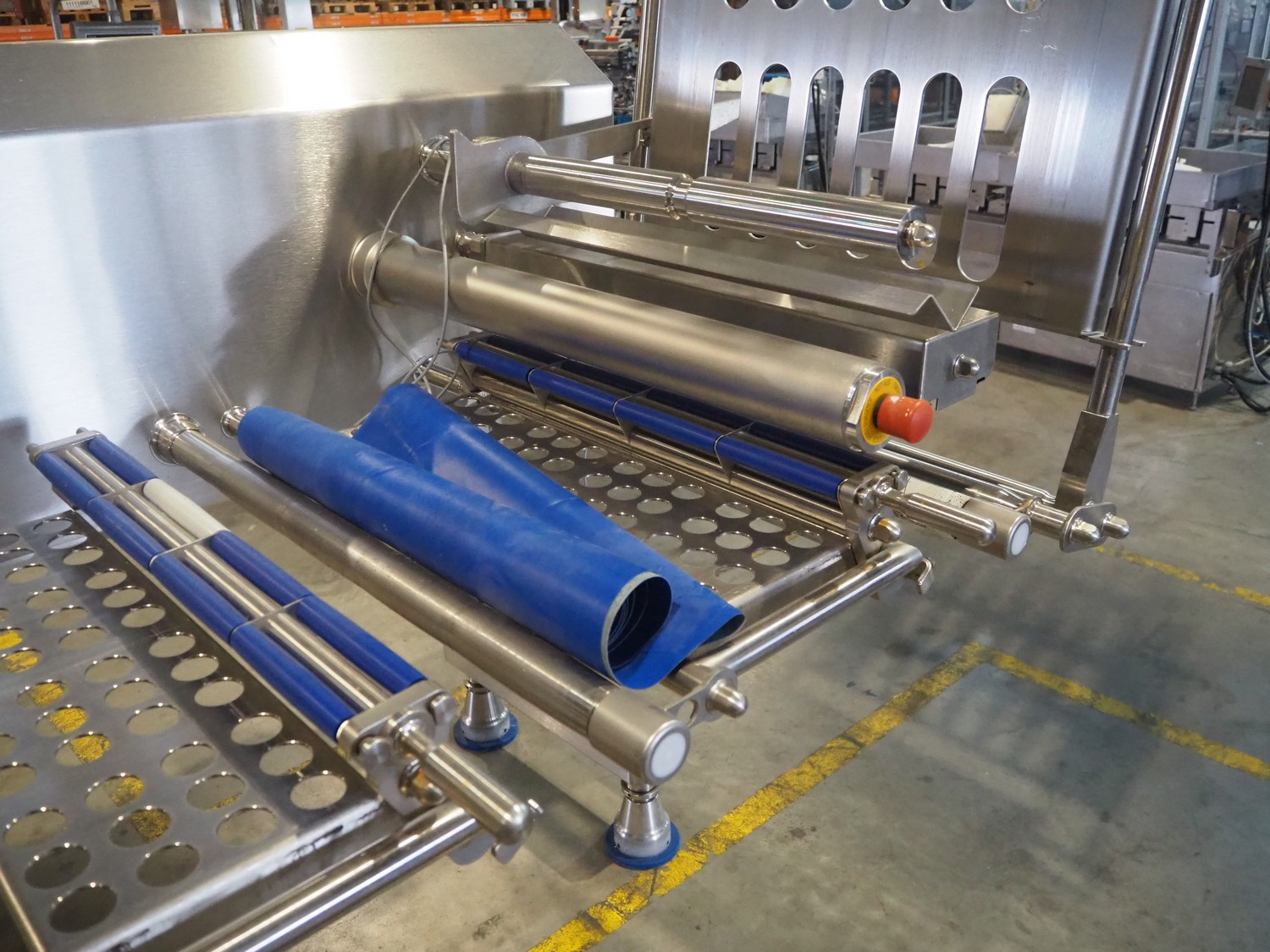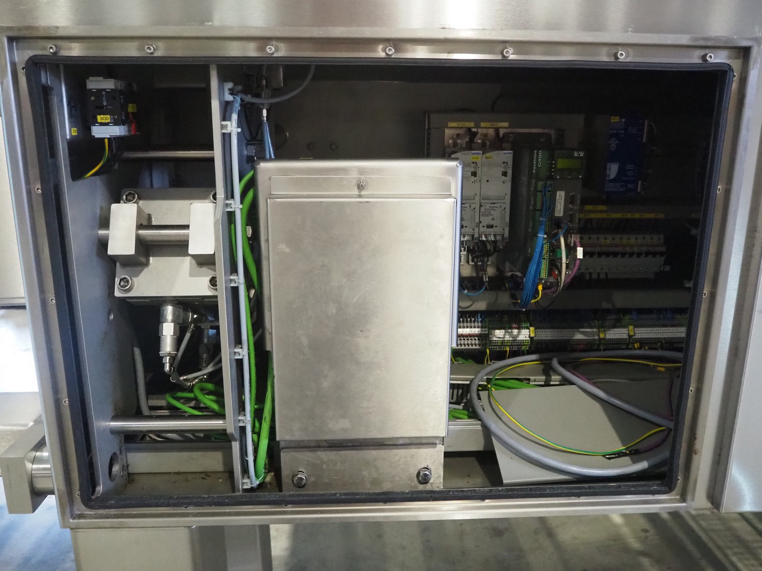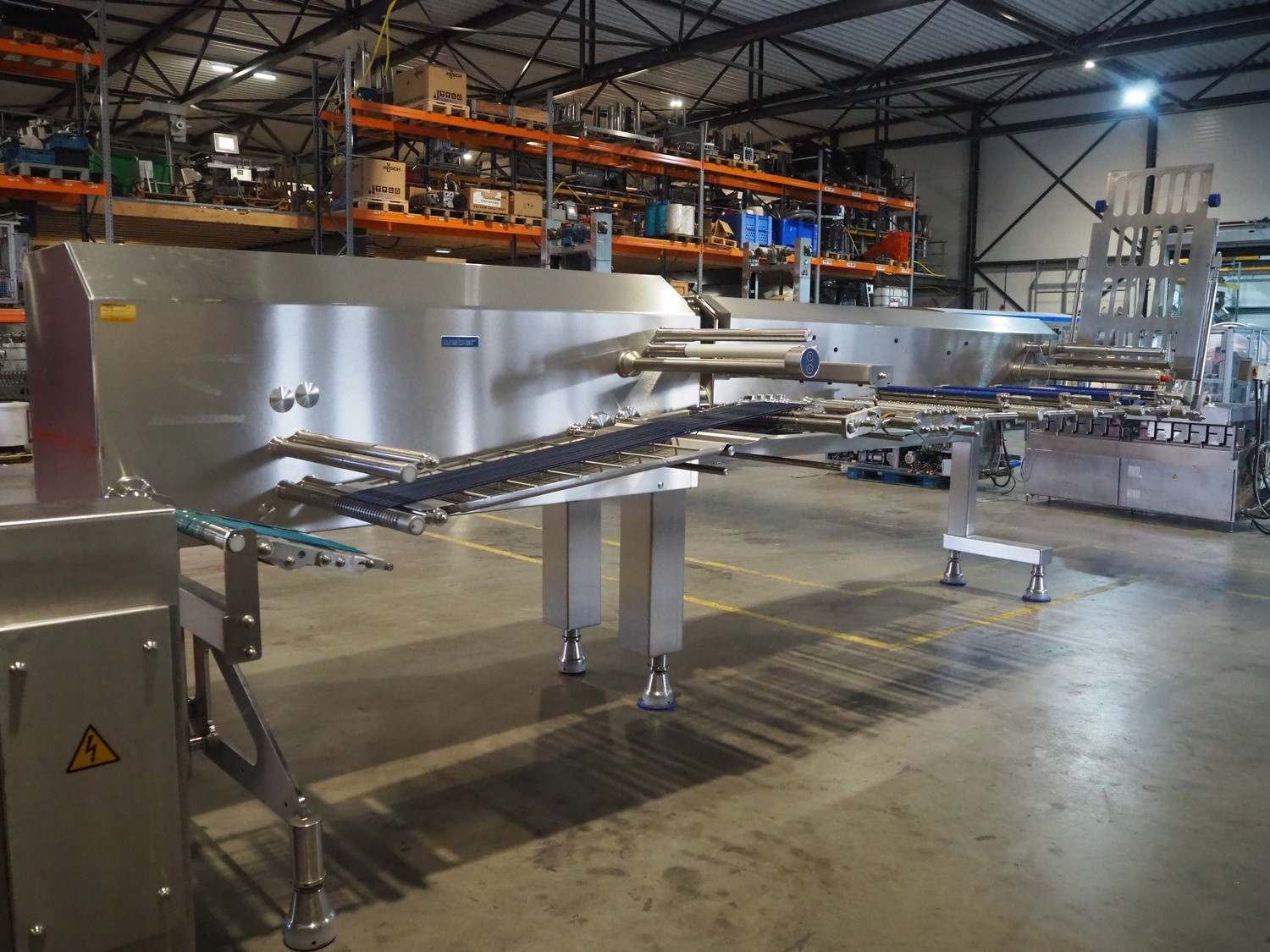 Weber outfeed belt, type: CCA, number: 2622, year of construction: 2006, 400 V, 50 Hz, 7 kW, plastic wired belt, belt width: 520 mm, total dimensions: 5370 mm x 1800 mm x 1800 mm.