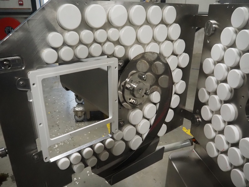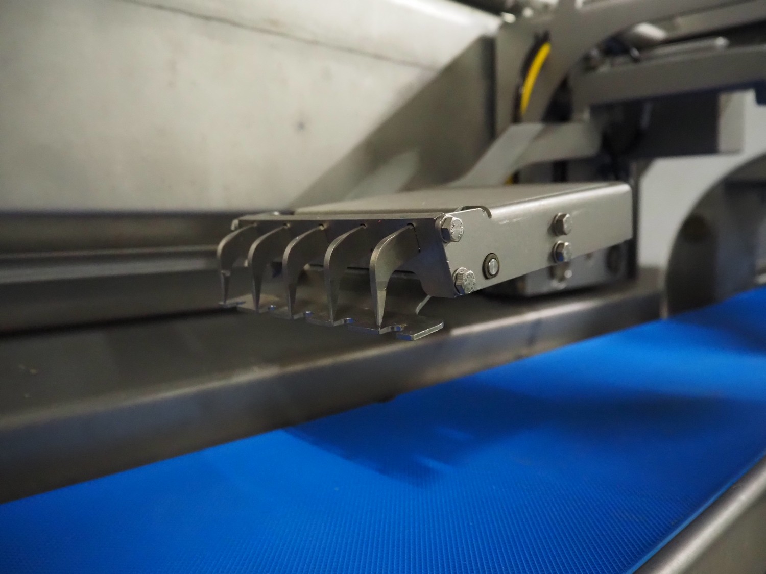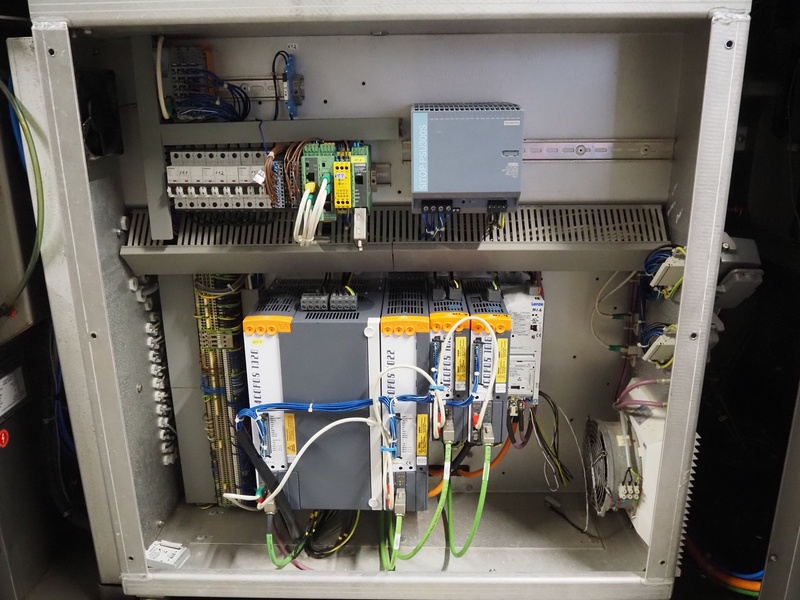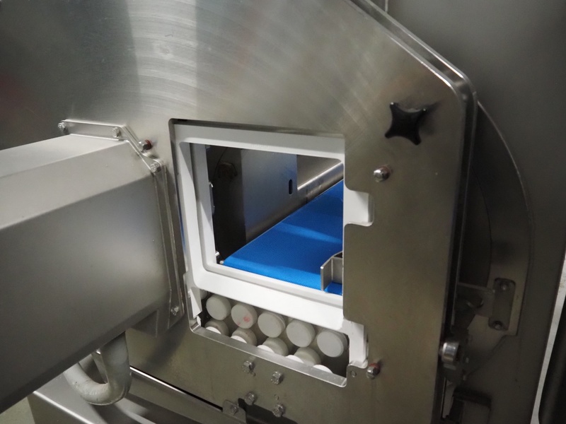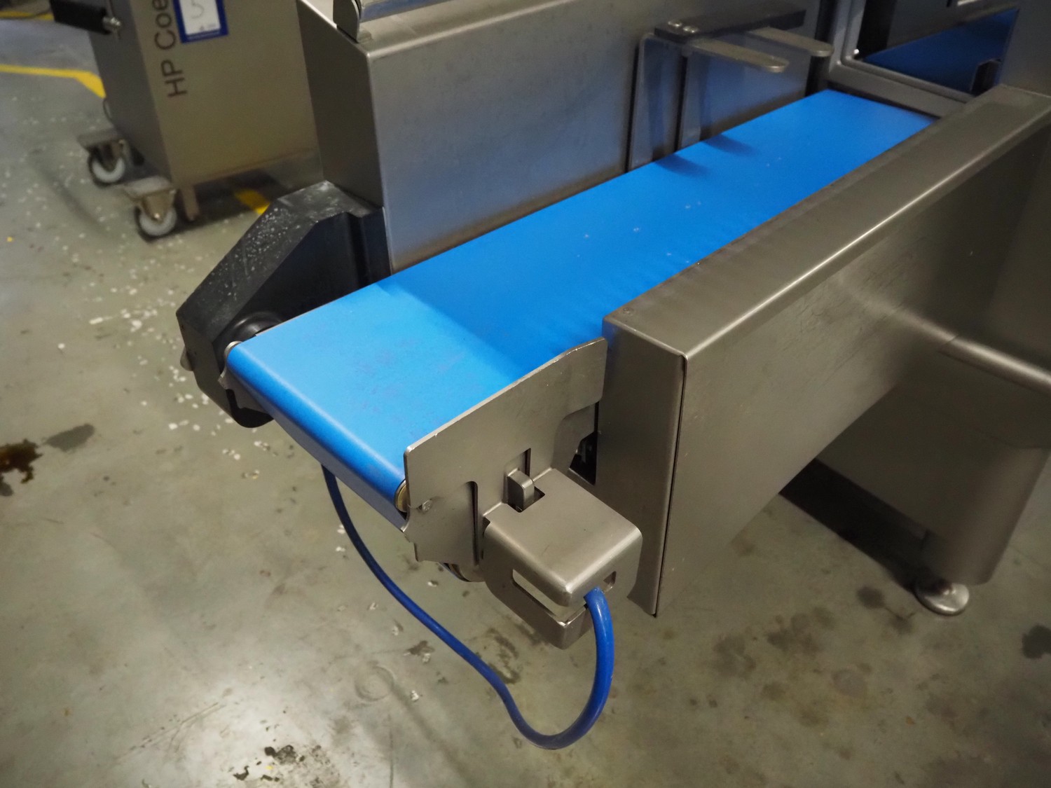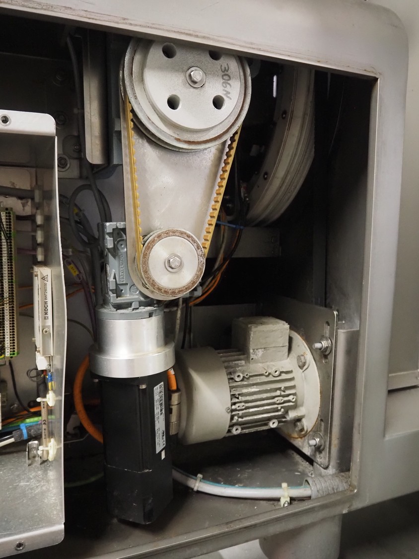 Treif Maschinenbau GmbH slicer and portion cutter, model: FALCON conti, machine number: 461005.154538.110208, year of construction: 2011, 380-480 V, 3 Ph, 50/60 Hz, 32 A, 8.6 kW, weight: 750 kg, plastic belt, belt width: 220 mm, clearance: 290 mm x 180 mm, total dimensions: 4630 mm x 1300 mm x 1900 mm.