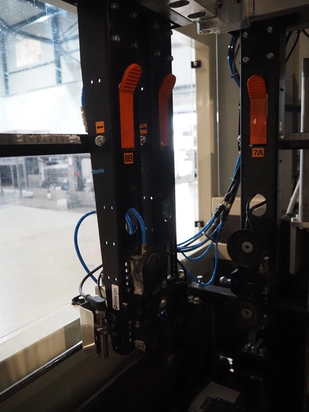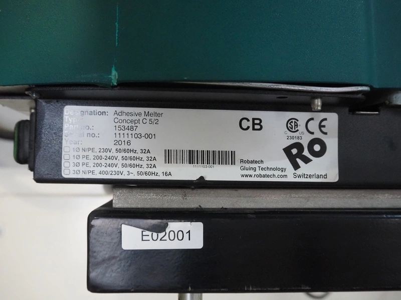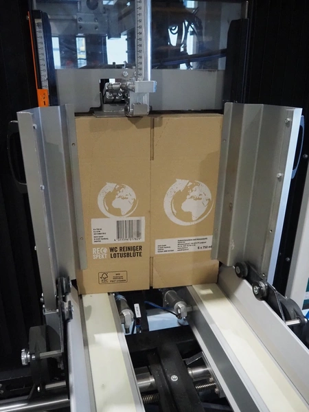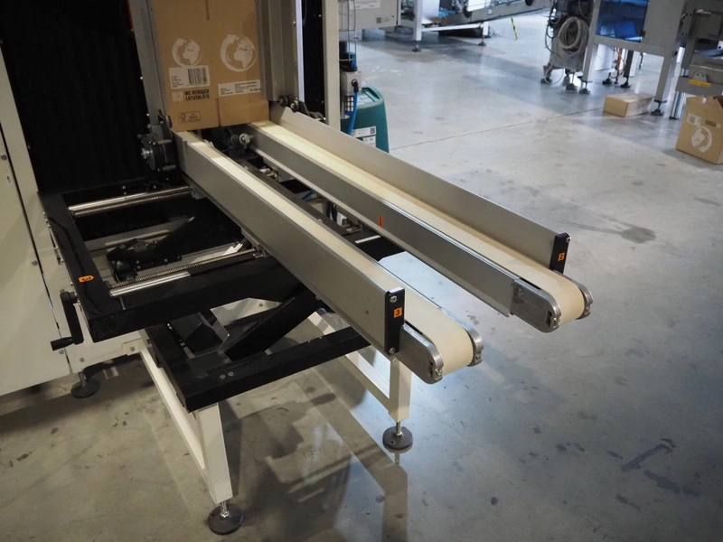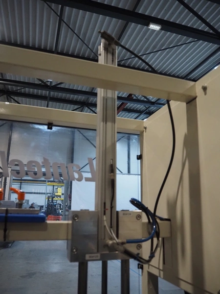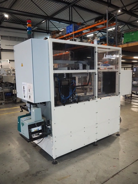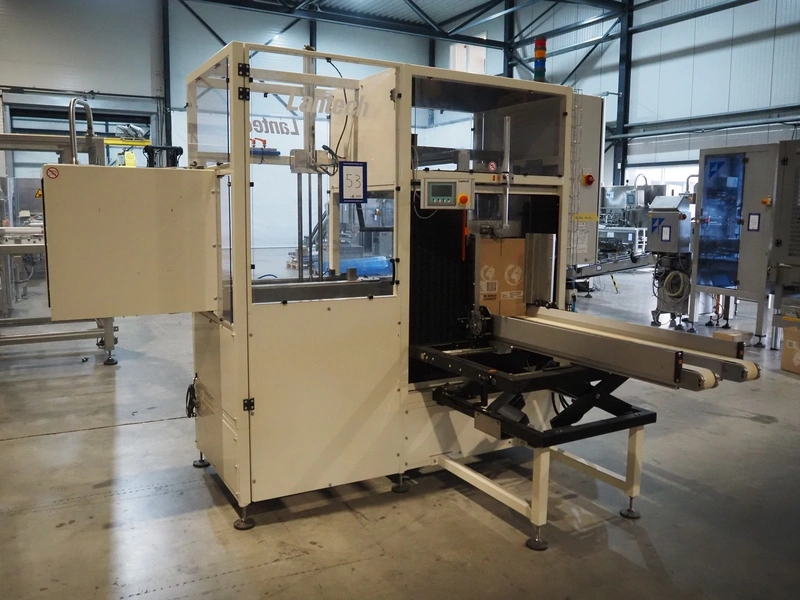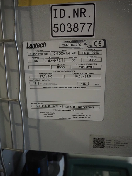 Lantech carton erecter, model C-1000-Hotmelt, serial number: SM20164280, year of construction: 06-jul-2016, 400 V, 3 Ph, 50 Hz, 4.37 kW, Robatech glue unit, type: Concept C 5/2, serial number: 11111103-001, year of construction: 2016, plastic belts, belt width: 65 mm, dimensions plano: 680 mm x 450 mm, total dimensions: 2400 mm x 2300 mm x 2600 mm.