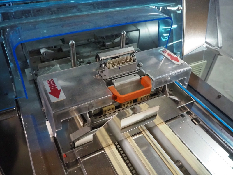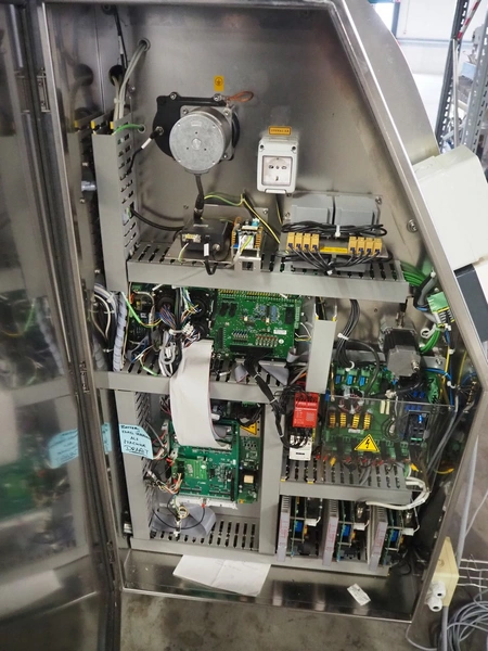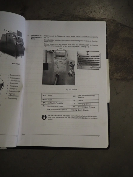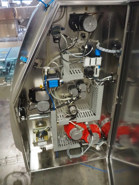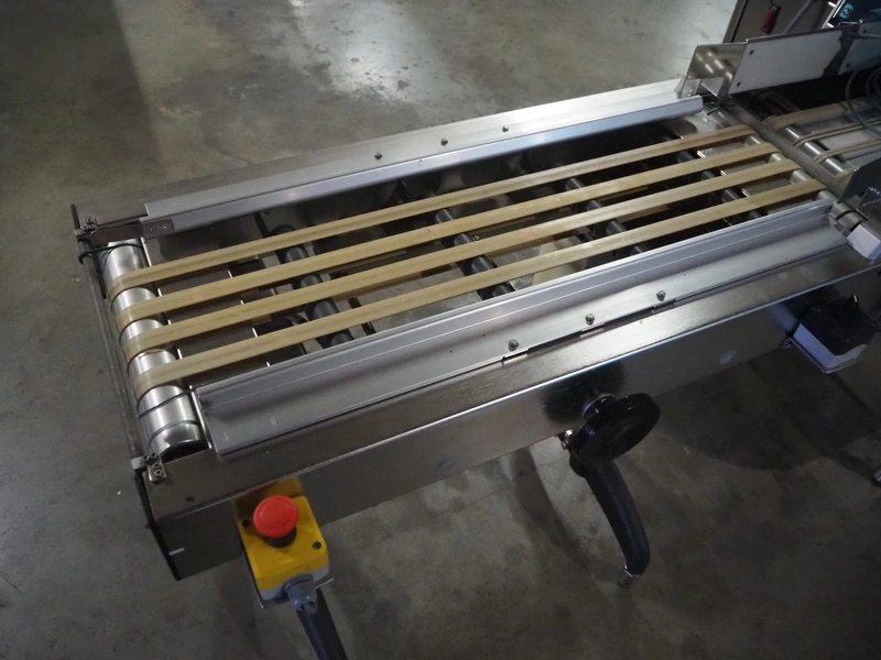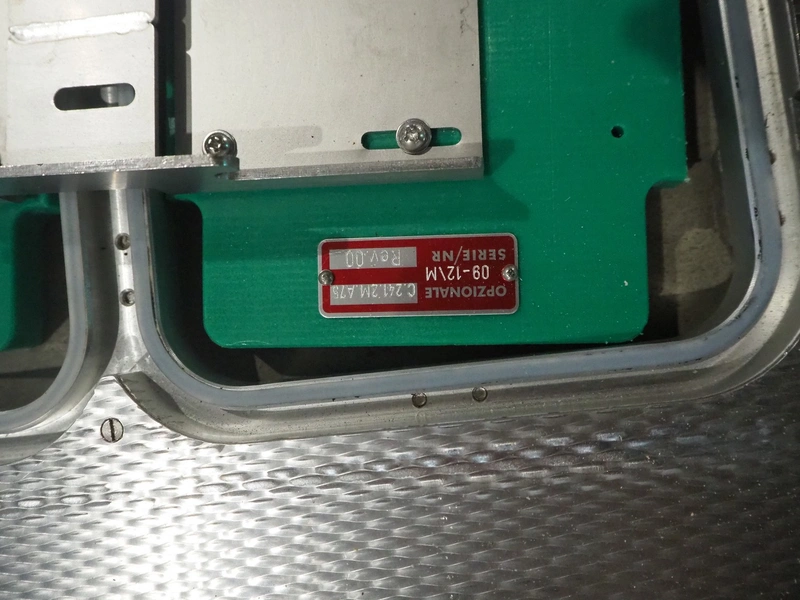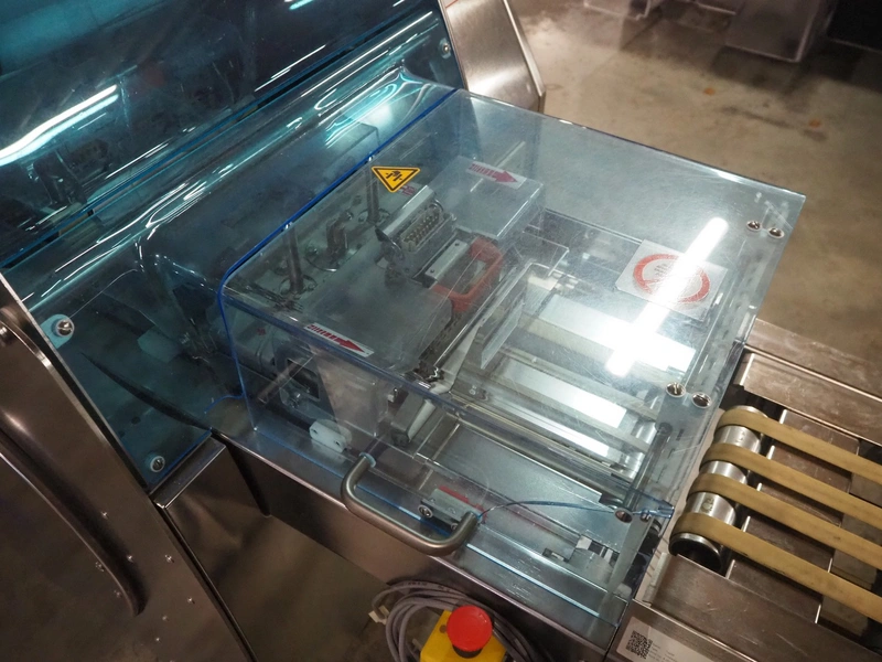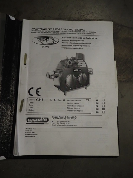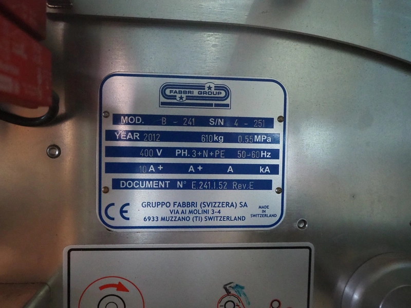 Gruppo Fabbri SA traysealer, model: B-241, serial number: 4-251, year of construction: 2012, 400 V, 3 Ph, 50-60 Hz, 10 A, weight: 610 kg, plastic string belt, belt width: 175 mm, dimensions dye: 300 mm x 240 mm, film width: 330 mm, total dimensions: 3830 mm x 950 mm x 1770 mm.