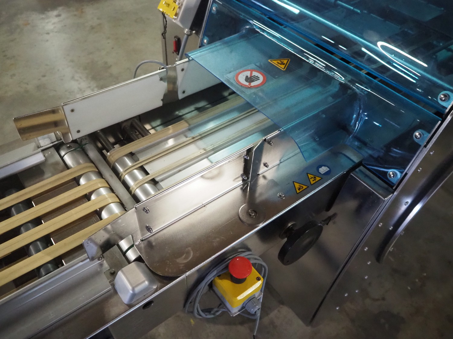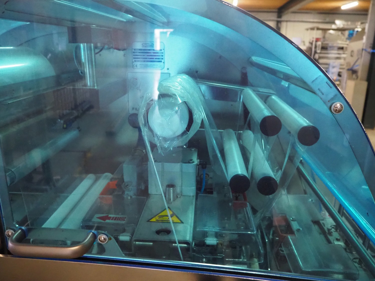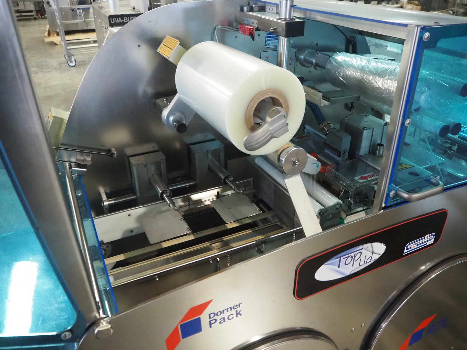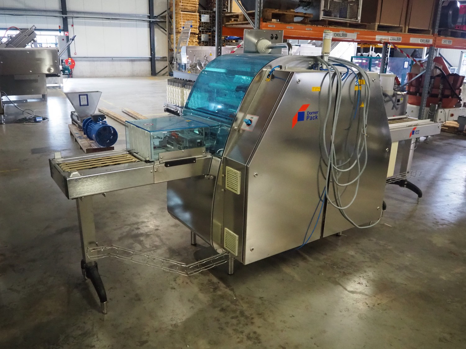 Gruppo Fabbri SA traysealer, model: B-241, serial number: 4-251, year of construction: 2012, 400 V, 3 Ph, 50-60 Hz, 10 A, weight: 610 kg, plastic string belt, belt width: 175 mm, dimensions dye: 300 mm x 240 mm, film width: 330 mm, total dimensions: 3830 mm x 950 mm x 1770 mm.
