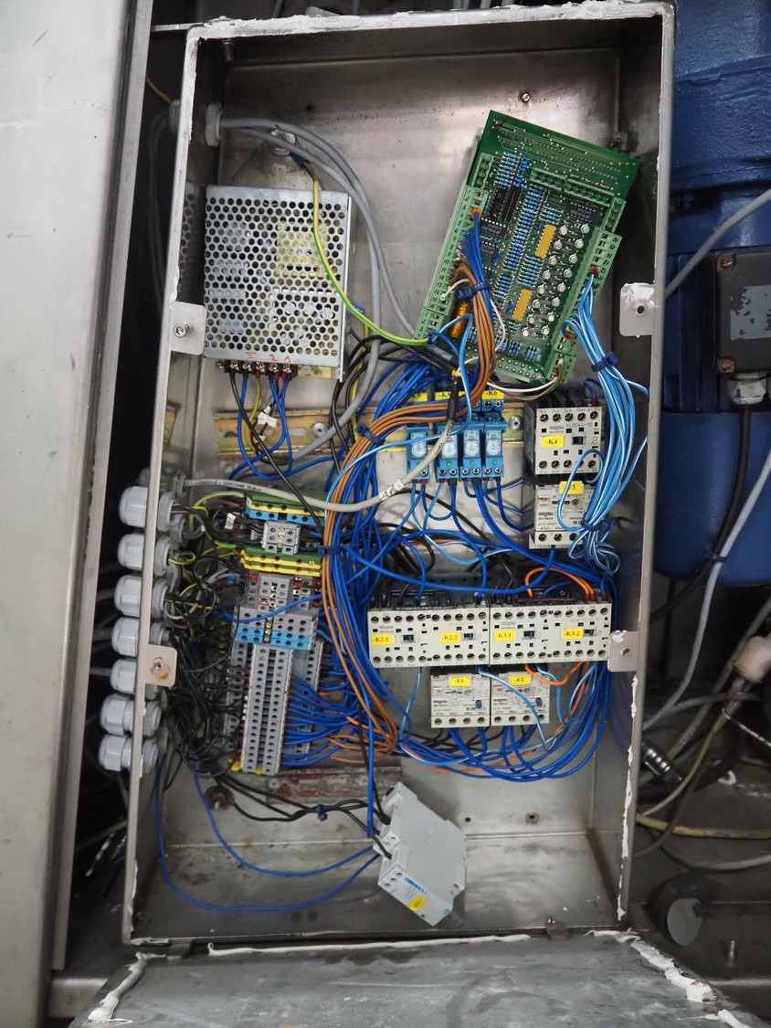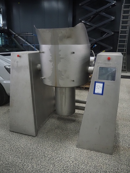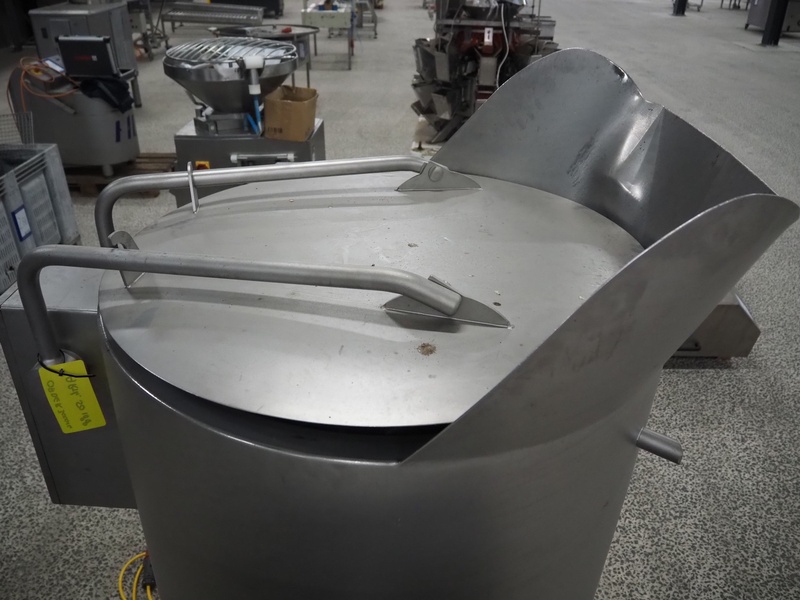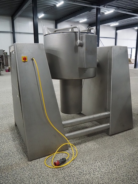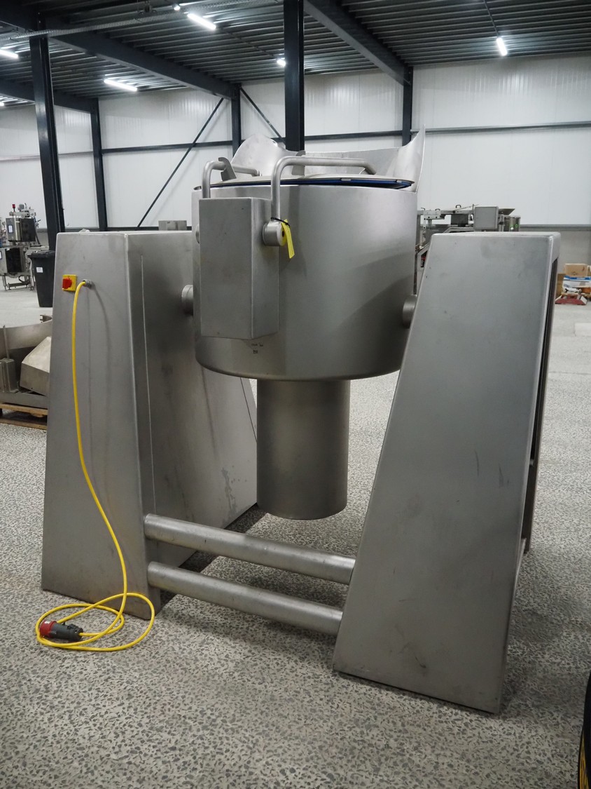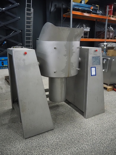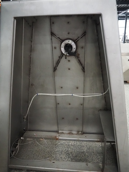 Rühle vacuum tumbler, Busch vacuum pump, type: KC 0016 D IZO, capacity: 16 m³ per hour, dimensions: 1950 mm x 1100 mm x 1920 mm. Incomplete, missing cooling compressor and lifter for 200 liter meat bins.