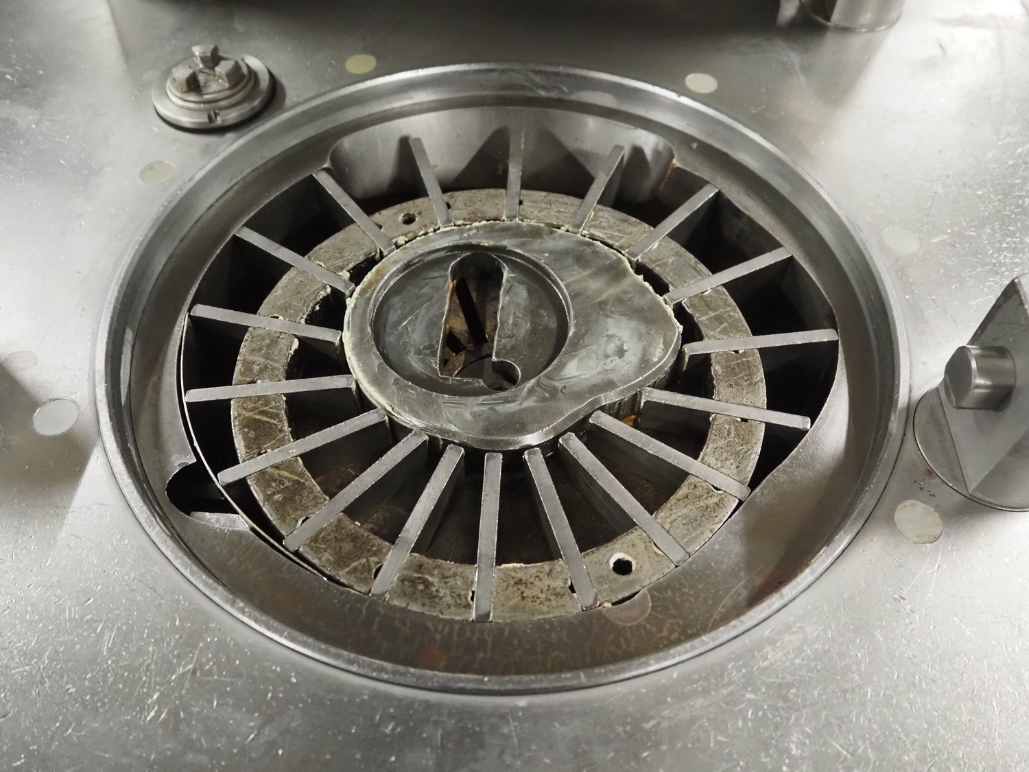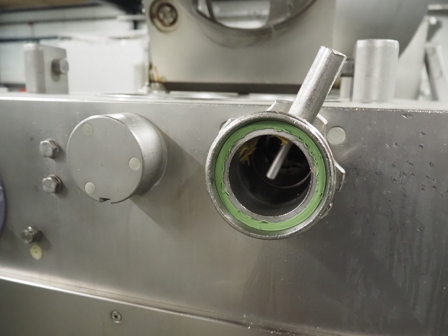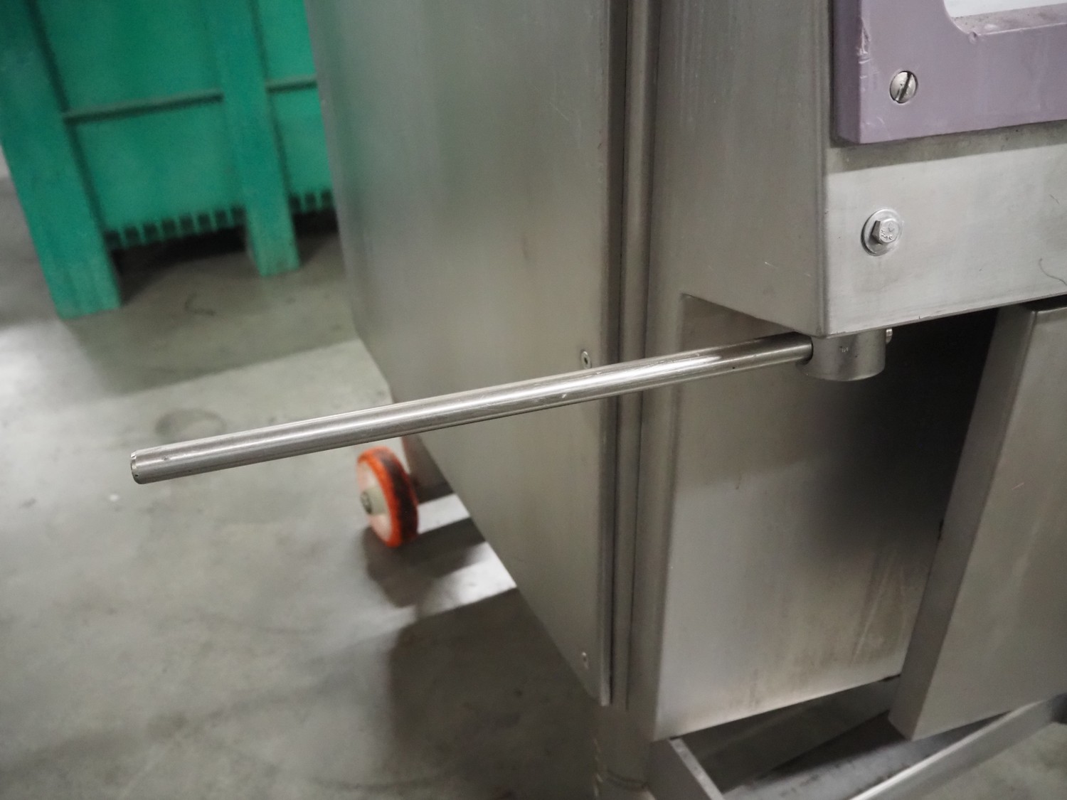 Handtmann mobile vacuum filling machine, type: VF300, number: 2804, year of construction: 1997, 400 V, 50 Hz, 21.8 A, 9 kW, dimensions: 1150 mm x 950 mm x 2050 mm. Incomplete.