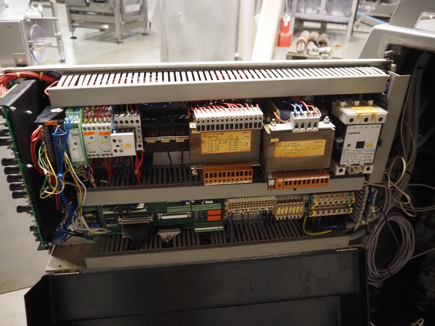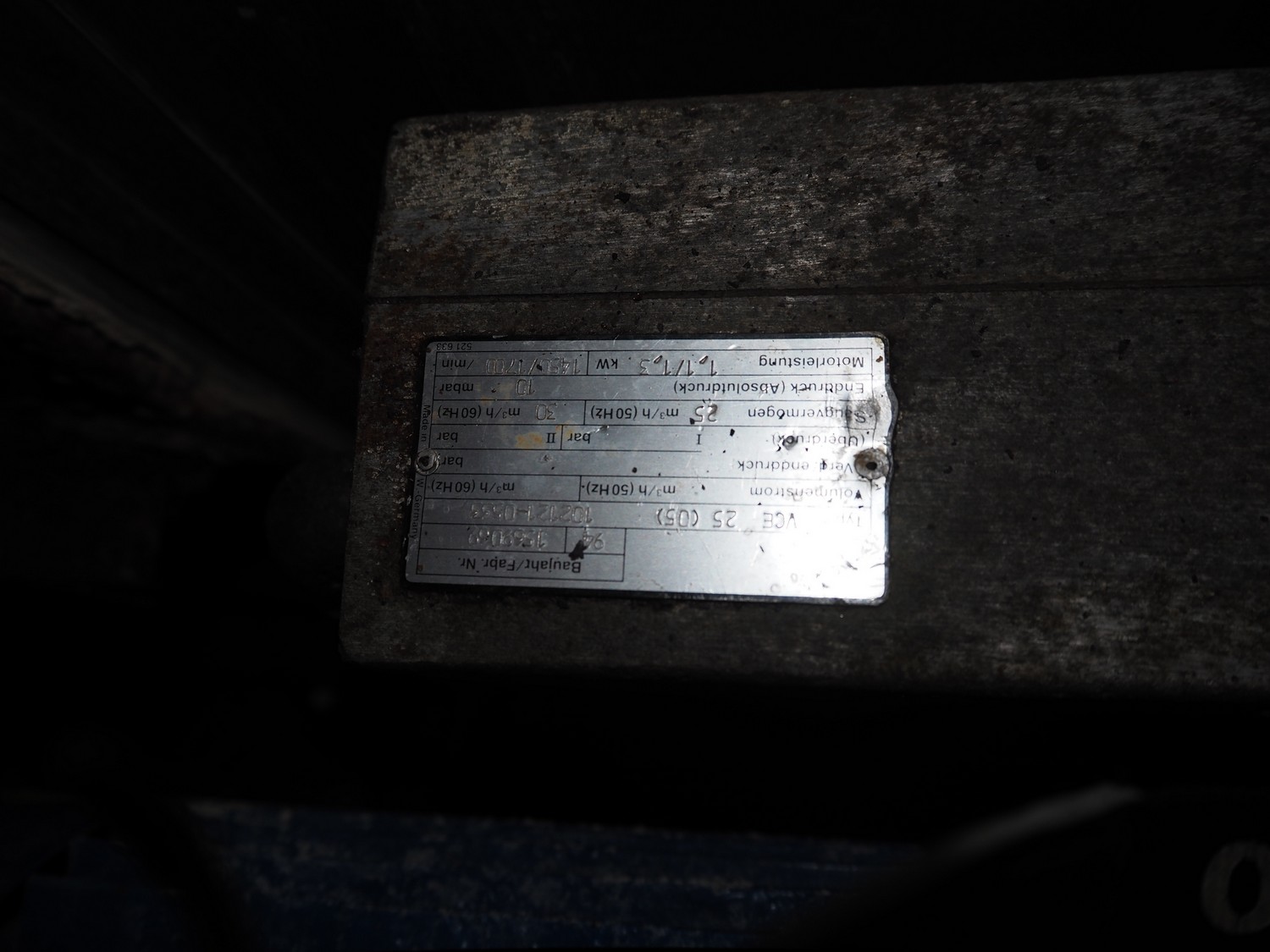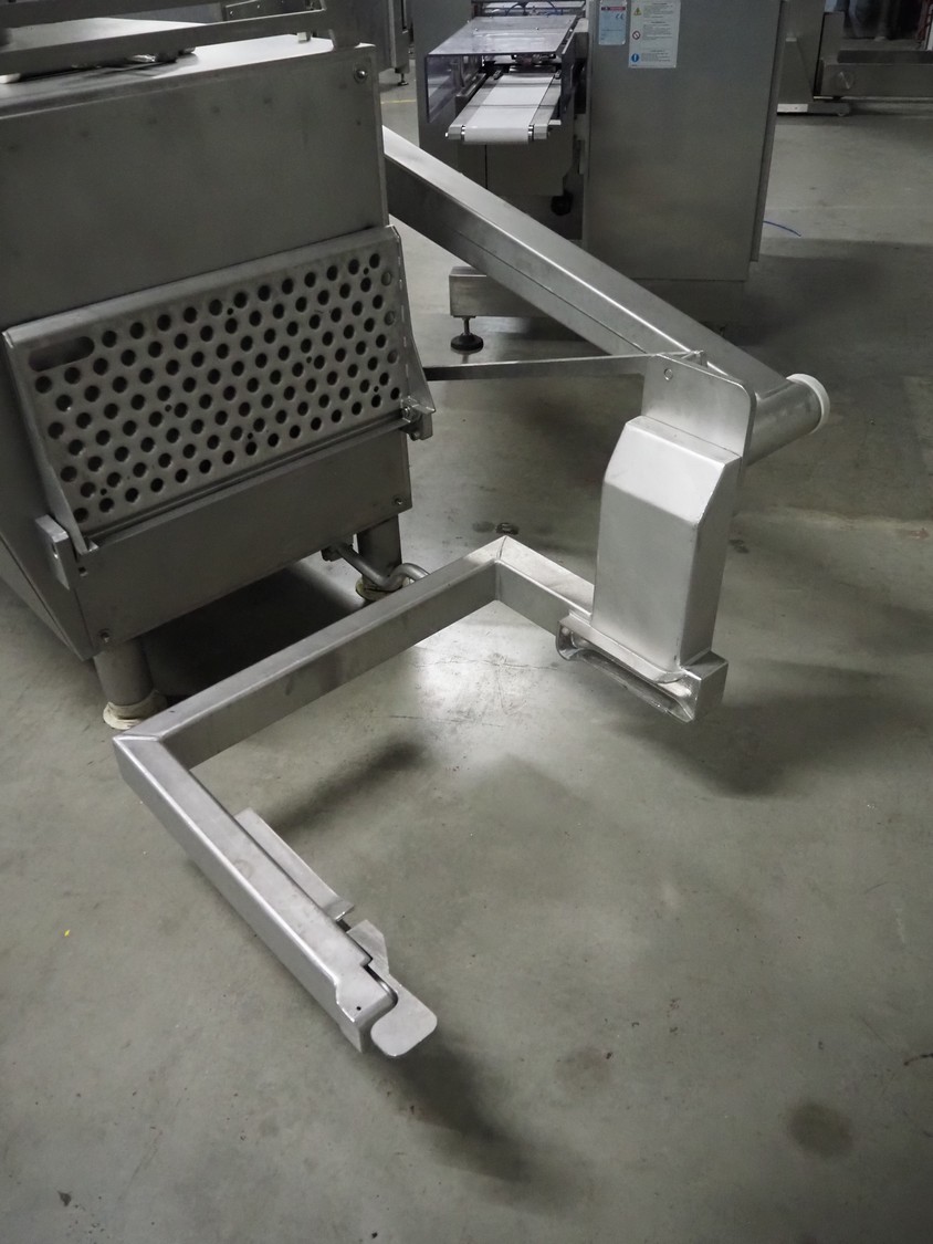 Vemag vacuum filling machine with lifter for 200 liter meat bins, model: ROBOT HP10, type: 140/350 B-1, number: 140 0444, year of construction: 1995, 220-460 V, 3 Ph, 50/60 Hz, 21/63 A, with Rietschle vacuum pump, type: VCE 25, number: 1569062, dimensions: 2100 mm x 1200 mm x 2350 mm.