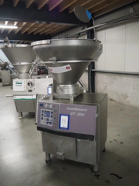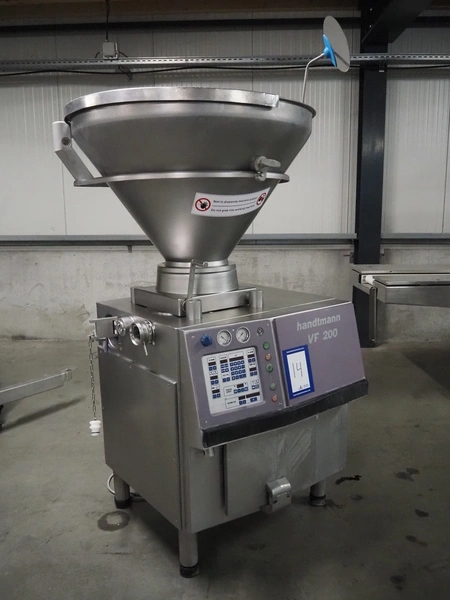 Handtmann vacuum filling machine, type: VF 200 B, number: 1057, 420 V, 50 Hz, 15.6 A, 6.5 kW, dimensions: 950 mm x 950 mm x 2200 mm.