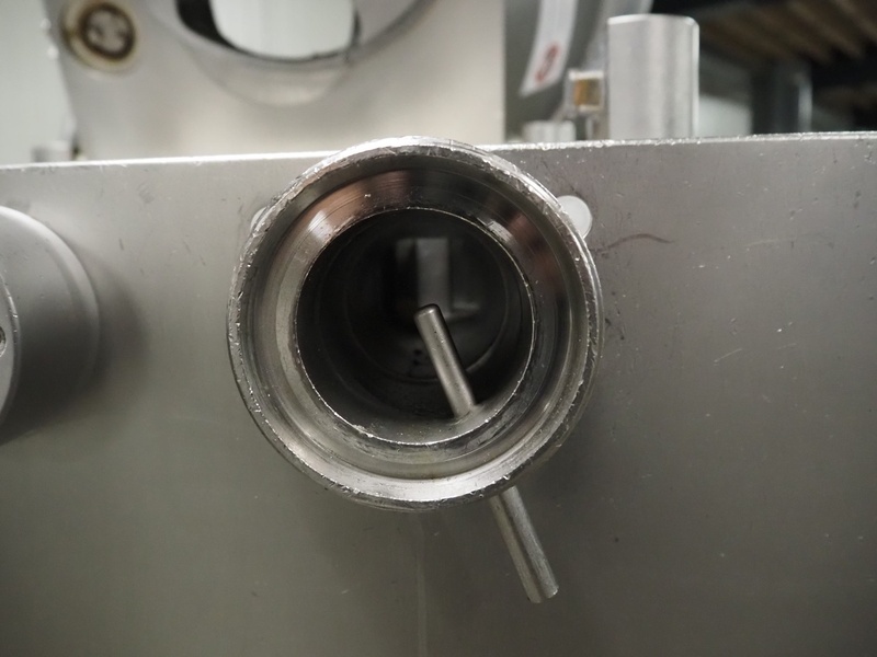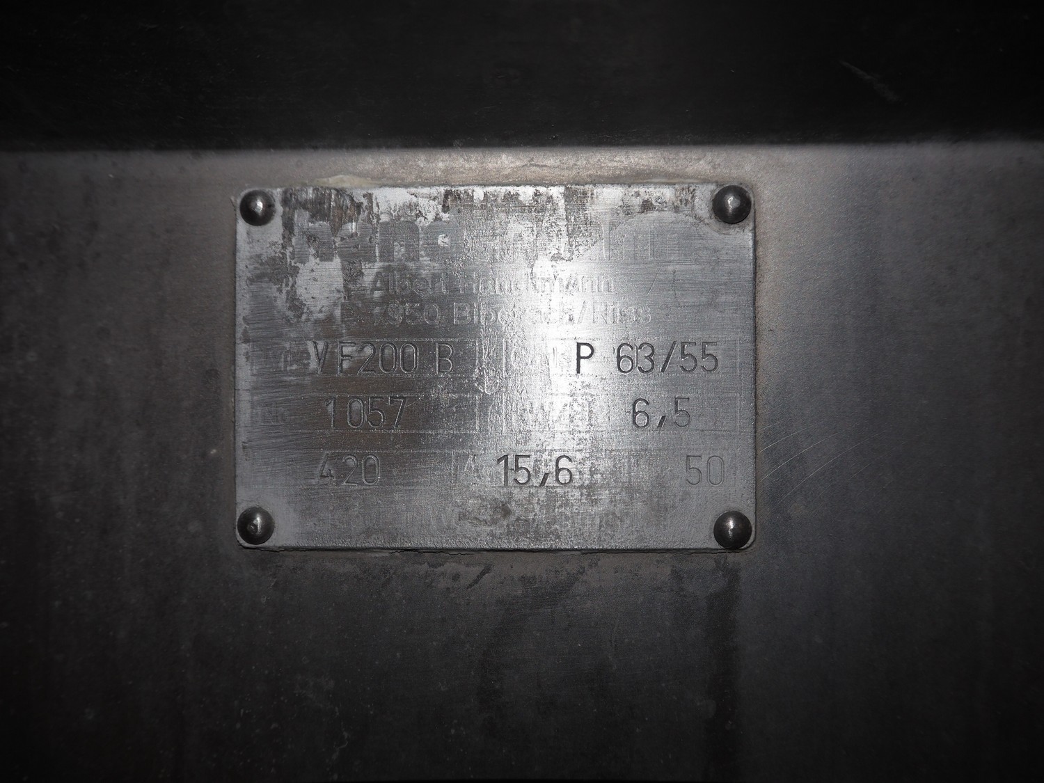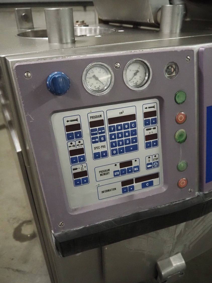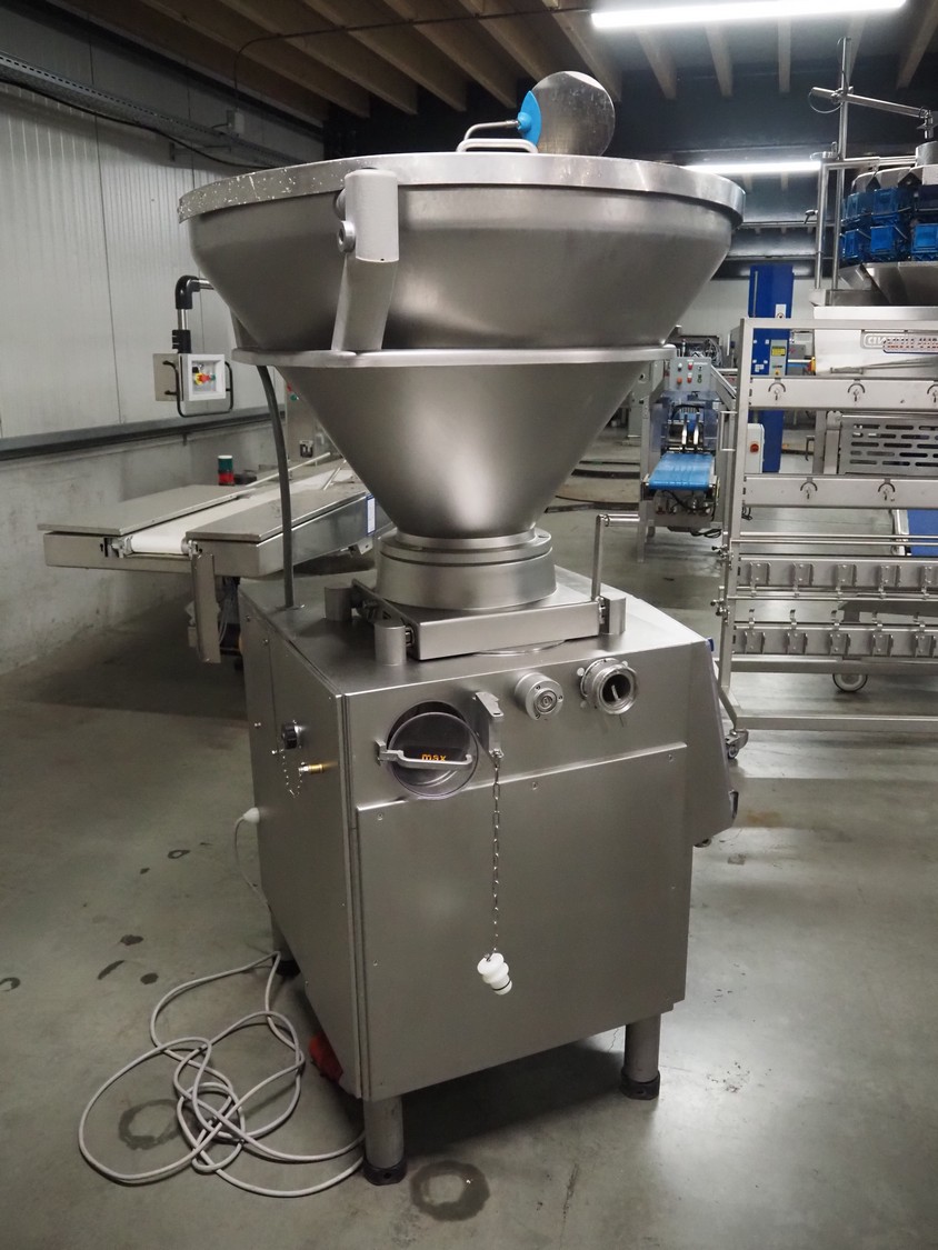 Handtmann vacuum filling machine, type: VF 200 B, number: 1057, 420 V, 50 Hz, 15.6 A, 6.5 kW, dimensions: 950 mm x 950 mm x 2200 mm.