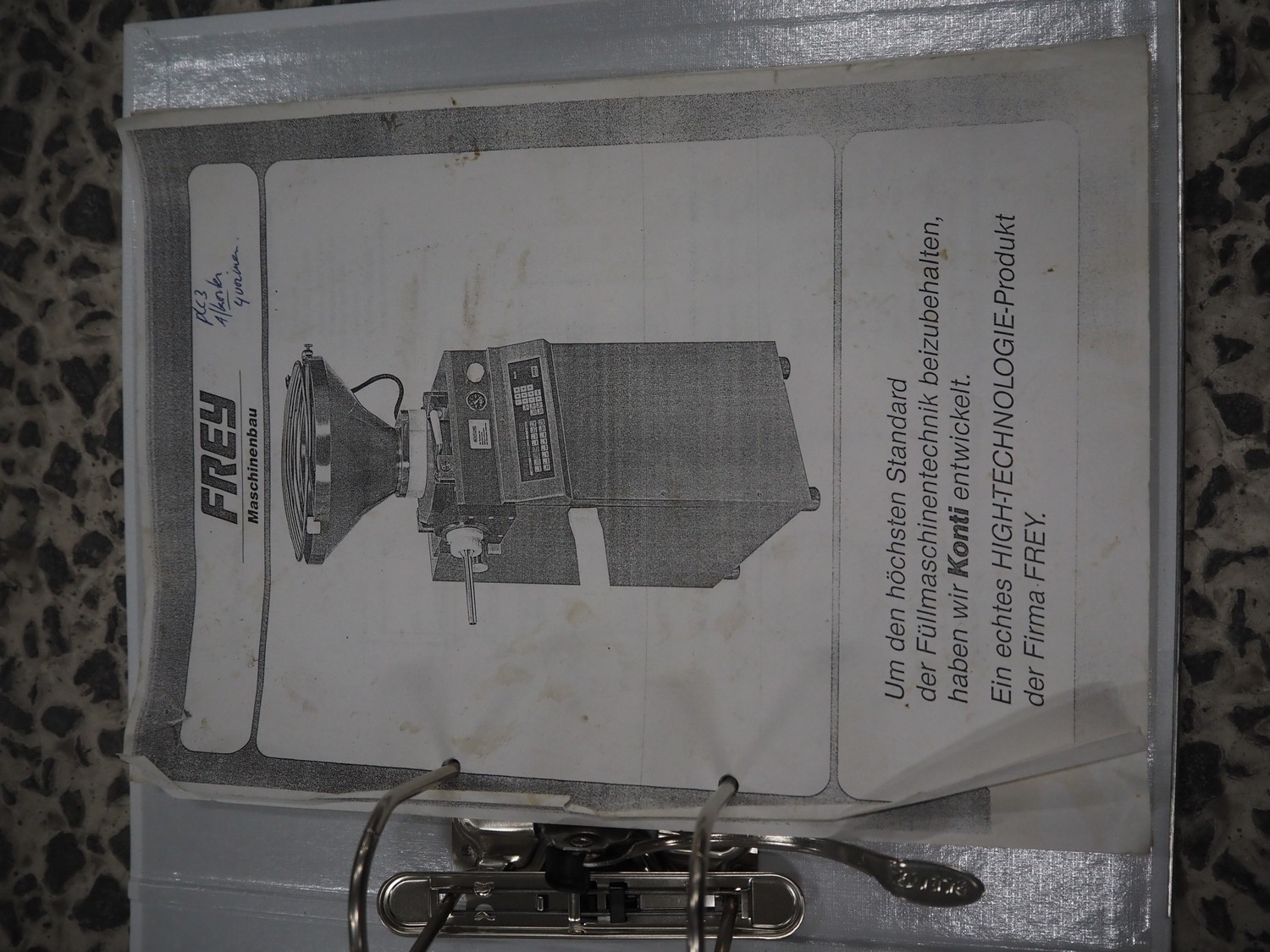 Frey vacuum filling machine, type: Konti 50, machine number: K50 23 03 88, 380 V, dimensions: 750 mm x 900 mm x 1450 mm.