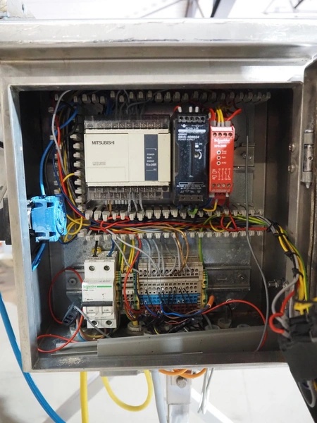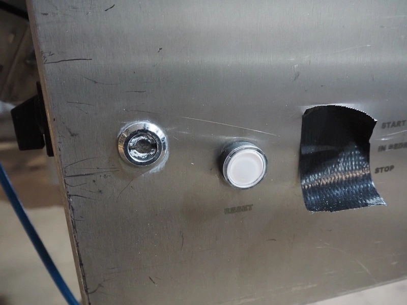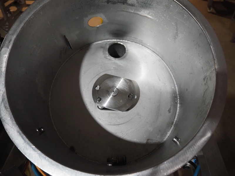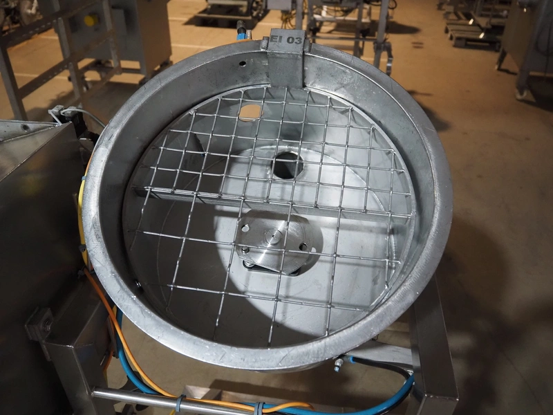 Mobile egg shell cutter for 16 eggs, dimensions: 950 mm x 850 mm x 1500 mm.