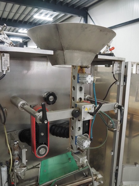 Innotech Verpackungsmaschinen GmbH vertical bag form-, fill- and seal machine, type: 3200 EVO-02, serial number: 10802430, year of construction: 2002, 230-400 V, 50 Hz, vertical seal length: 500 mm, horizontal seal length: 350 mm, diameter filling pipe: 150 mm, total dimensions: 2300 mm x 1550 mm x 2350 mm.