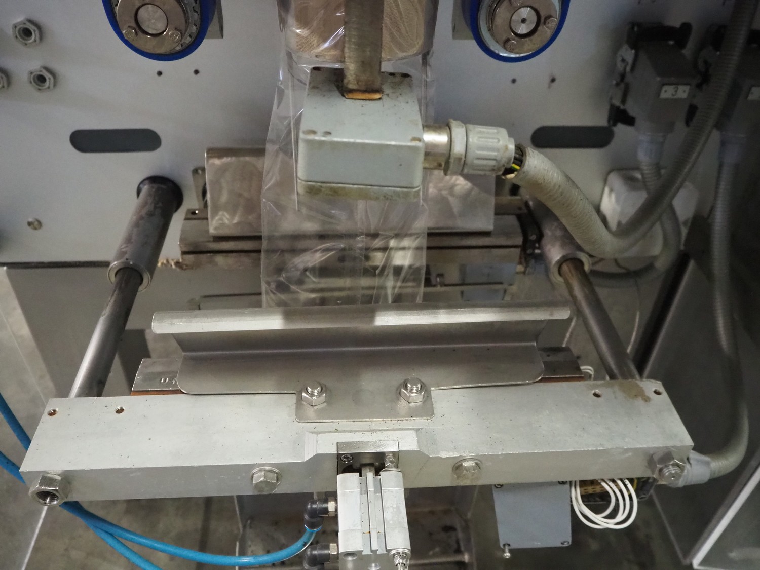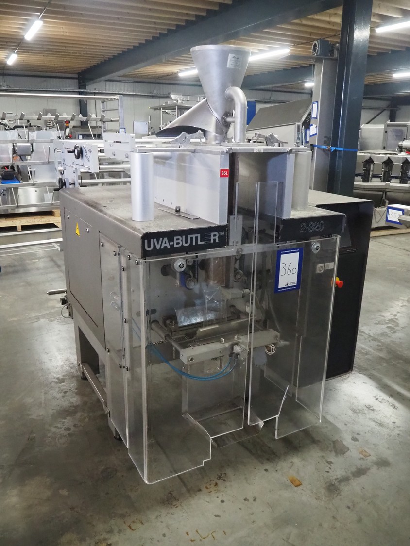 Uva-Butler vertical form-, fill-, and seal machine, type: BUT.2-230, machine number: 98518, year of construction: 1998, 400 V, 50 Hz, diameter filling pipe: 120 mm, vertical seal length: 600 mm, horizontal seal length: 370 mm, film width: 380 mm, total dimensions: 1970 mm x 1500 mm x 1910 mm.