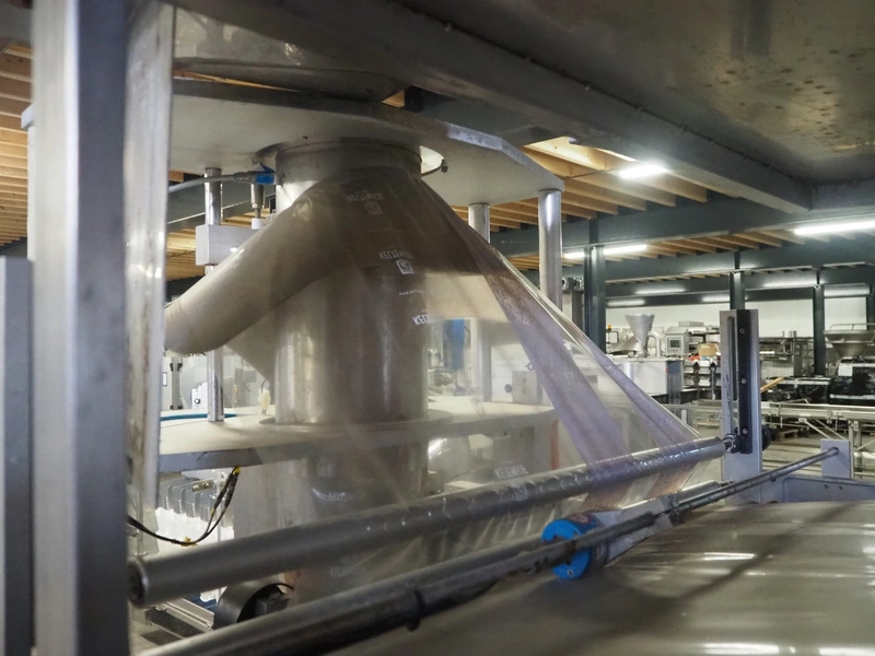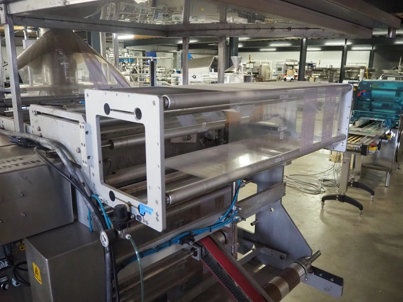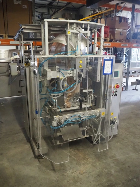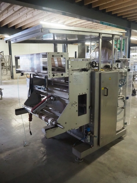 Deltapack vertical bag form-, fill-, and seal machine, type: DE420FU, machine number: 269, year of construction: 2003, film width: 740 mm, vertical seal length: 540 mm, horizontal seal length: 430 mm, total dimensions: 2300 mm x 1550 mm x 2000 mm.