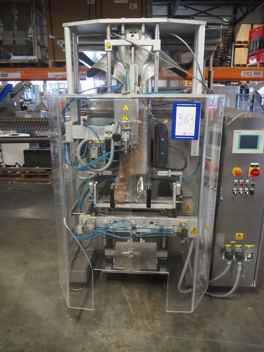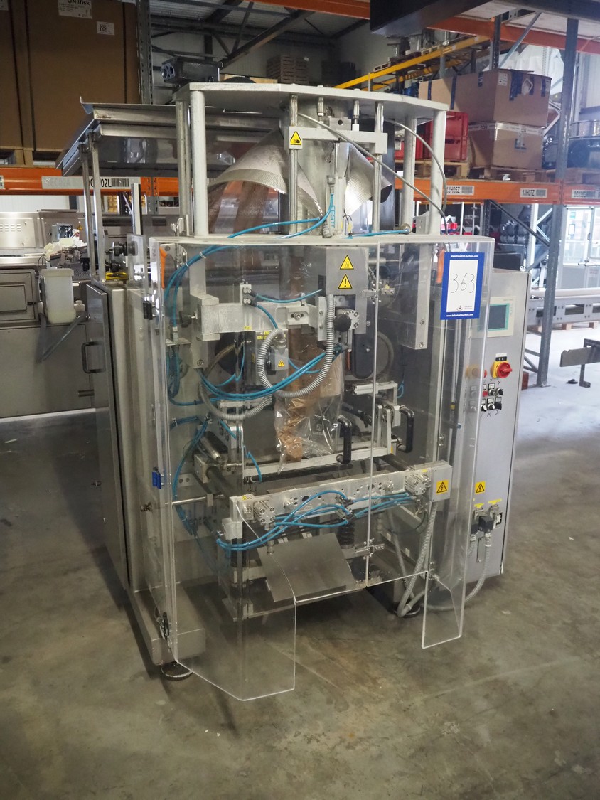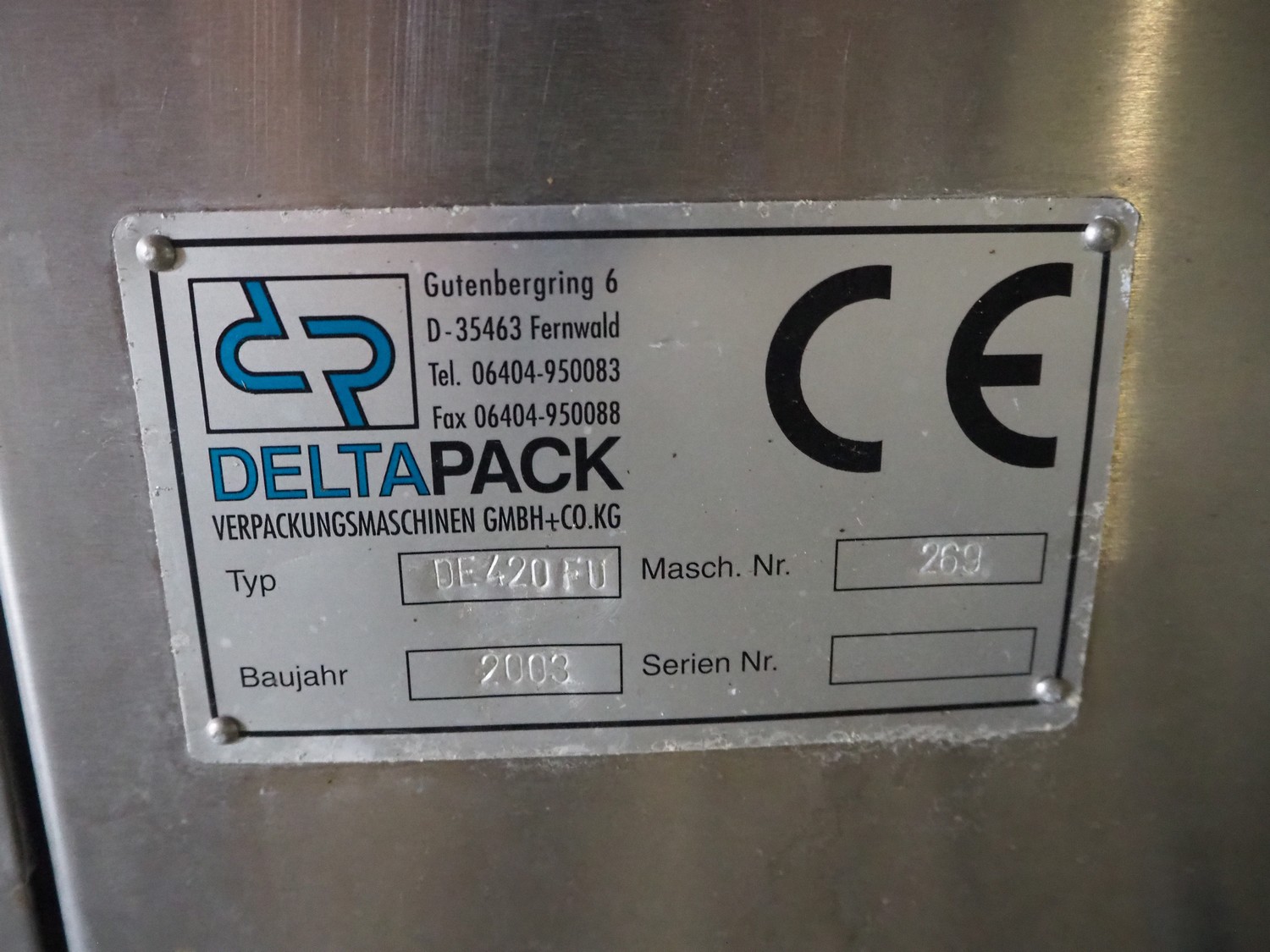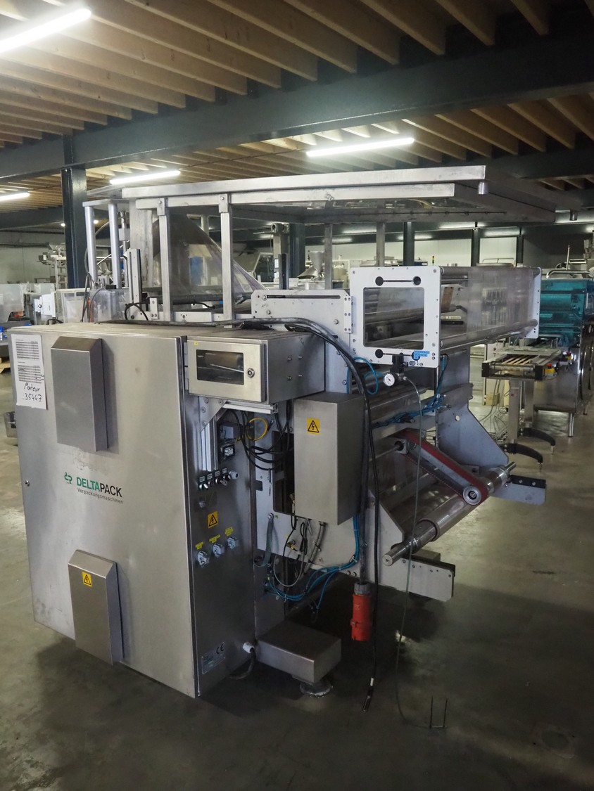 Deltapack vertical bag form-, fill-, and seal machine, type: DE420FU, machine number: 269, year of construction: 2003, film width: 740 mm, vertical seal length: 540 mm, horizontal seal length: 430 mm, total dimensions: 2300 mm x 1550 mm x 2000 mm.