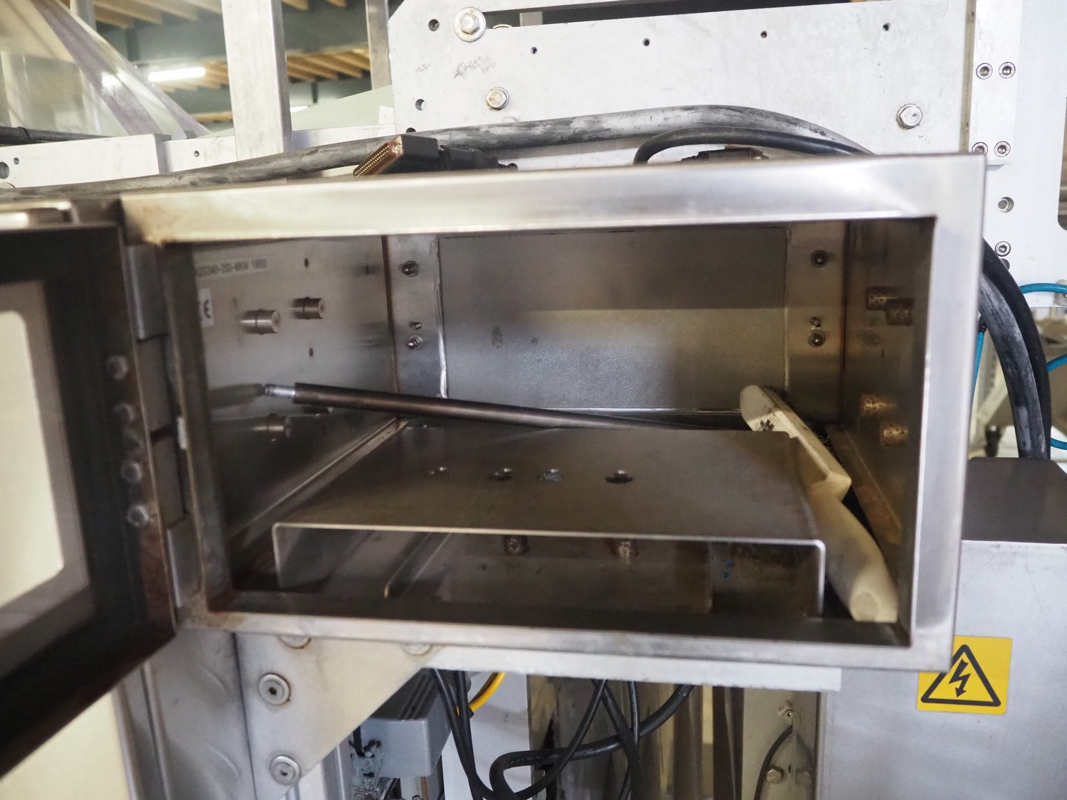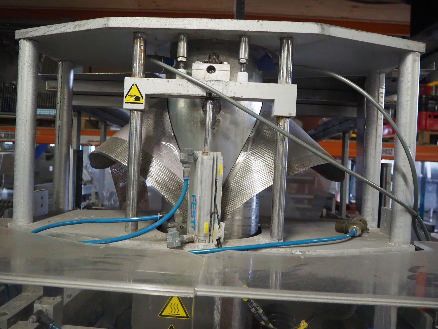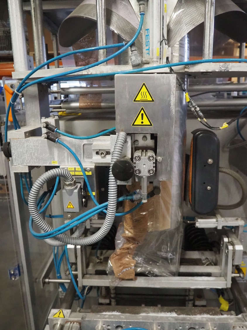 Deltapack vertical bag form-, fill-, and seal machine, type: DE420FU, machine number: 269, year of construction: 2003, film width: 740 mm, vertical seal length: 540 mm, horizontal seal length: 430 mm, total dimensions: 2300 mm x 1550 mm x 2000 mm.