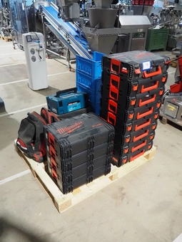 Pallet with Milwaukee/Makita boxes, dimensions pallet: 1200 mm x 800 mm x 1200 mm.