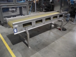1932-29: NN transport beltTransport belt, s/s frame, plastic mesh belts with rollers, belt width: 450 mm, total dimensions: 2450 mm x 830 mm x 820 mm.2 bidsLot is closed
