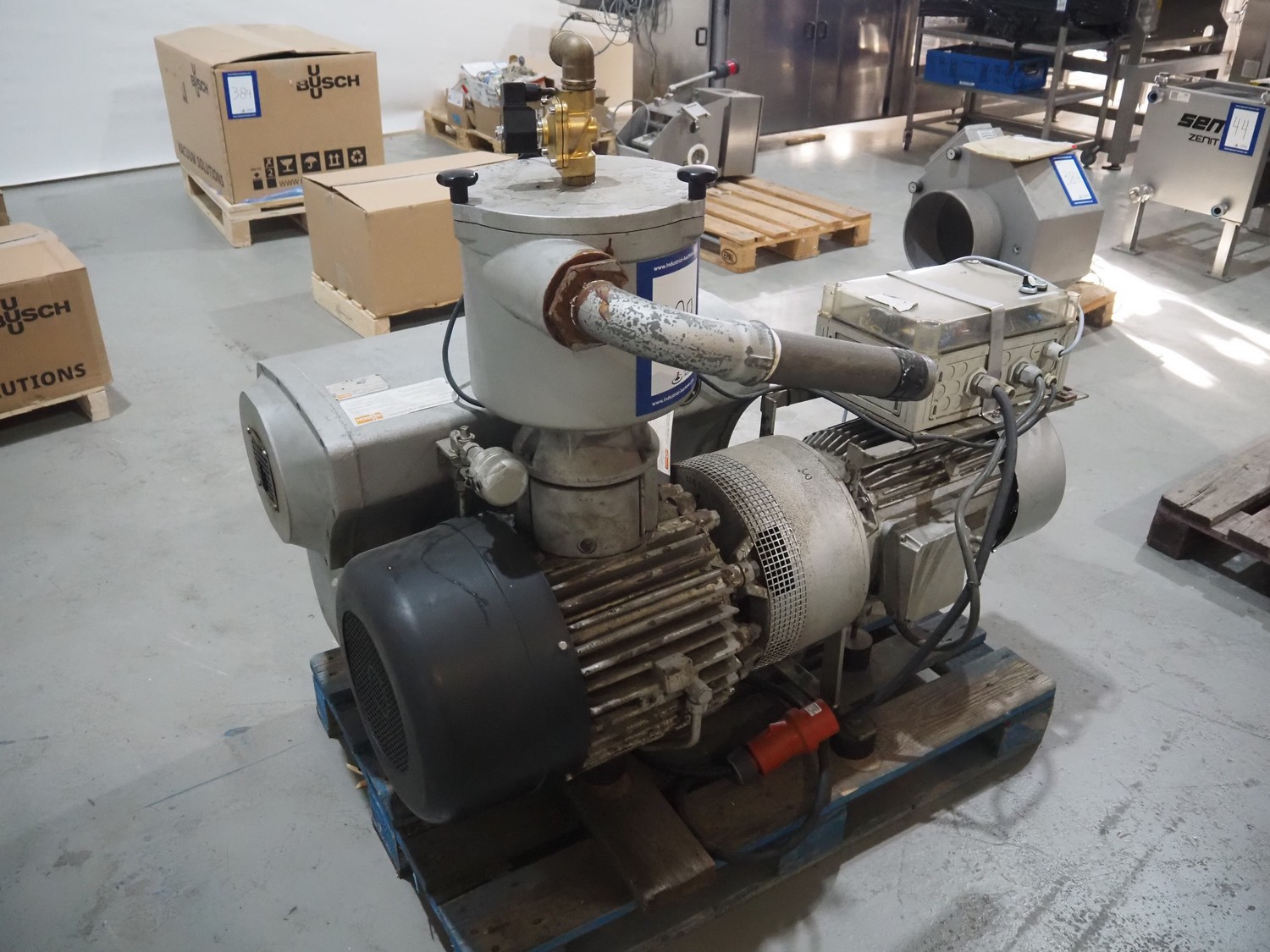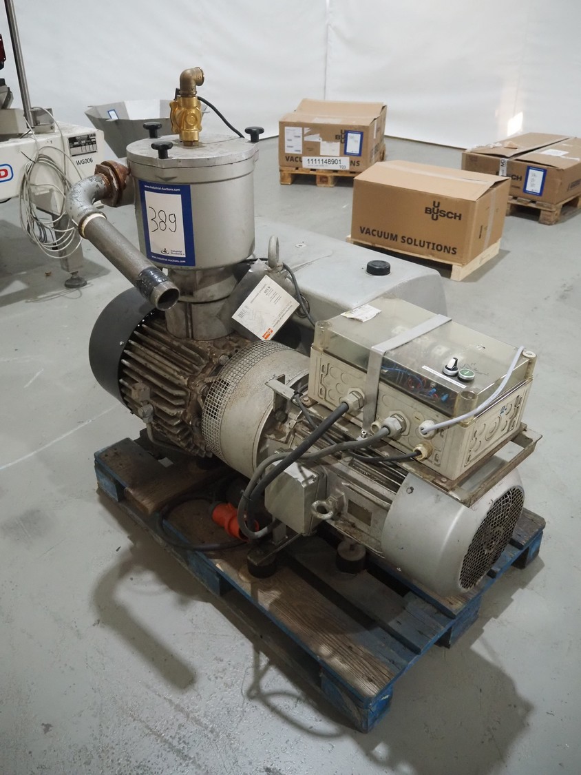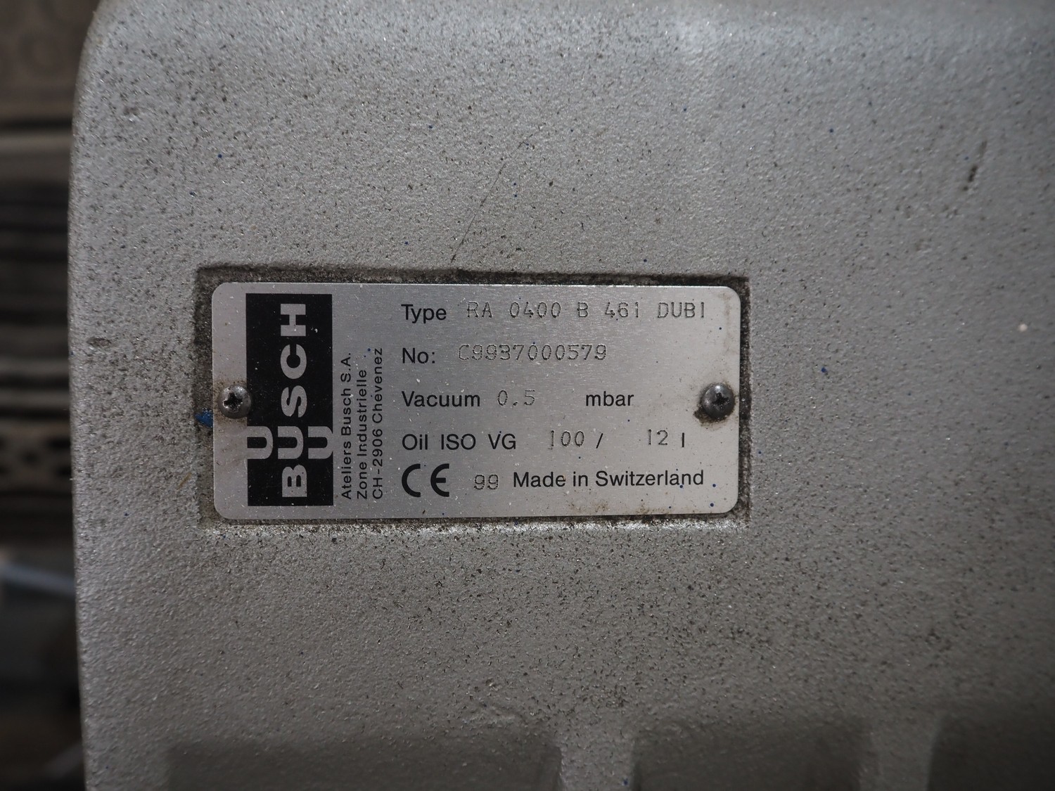 Busch vacuum pump, type: RA 0400 B 461 DUBI, number: C9937000579, capacity: 400 m³ per hour, dimensions: 1300 mm x 850 mm x 1400 mm.