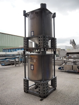 1932-401: Behälter kg - Bremen2 Behälter kg - Bremen s/s tanks on steel frames, tank dimensions: (2x) Ø 1100 mm x 1400 mm, dimensions frame: (2x) 1150 mm x 1150 …5 bidsLot is closed