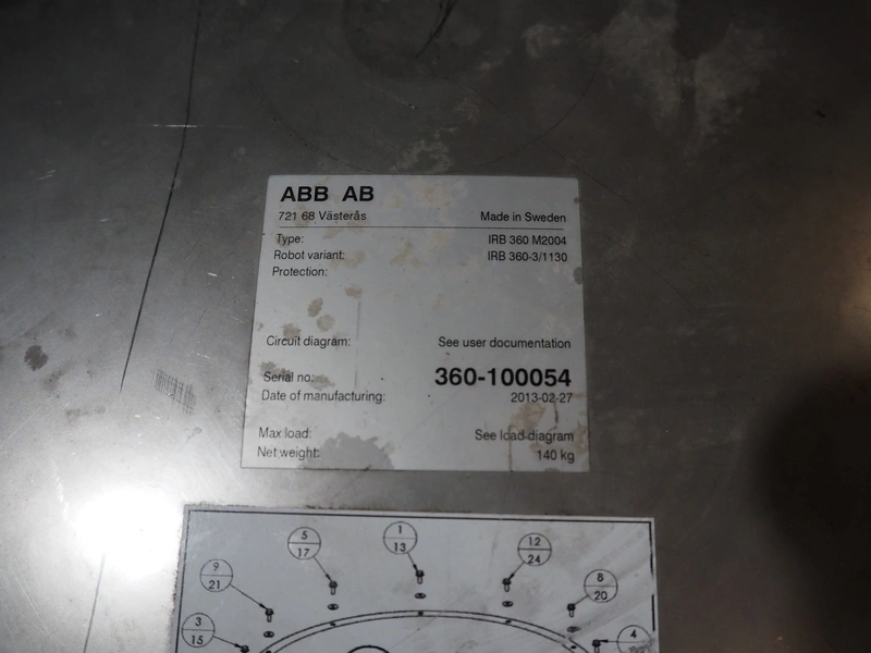 ABB pick and place robot arm, type: IRB 360 M2004, serial number: 360-100055, year of construction: 2013, dimensions: 1000 mm x 900 mm x 500 mm. Including operating system.
