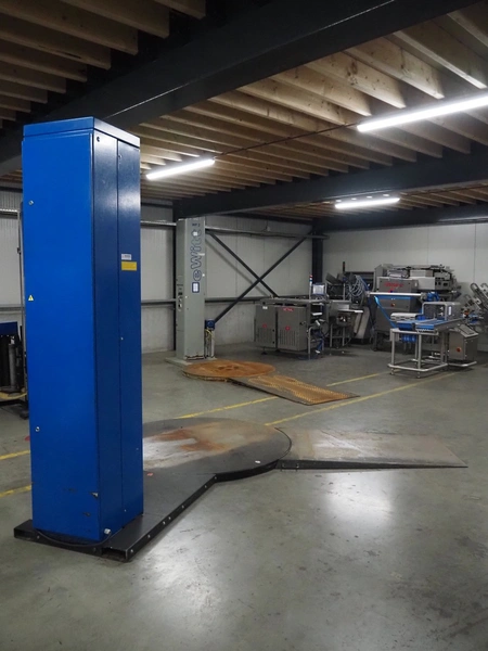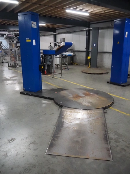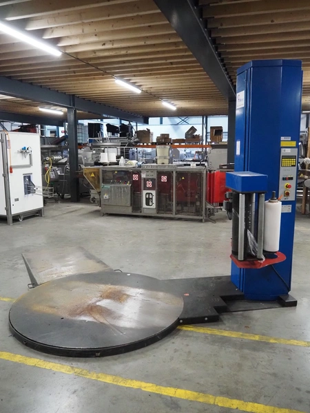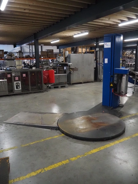 Matco pallet wrapper, type: A618Z PREA, serial number: MA-99111, year of construction: 01/1999, 400 V, 3 Ph, 50 Hz, 765 kg, steel platform, diameter platform: 1750 mm, total dimensions: 3000 mm x 1750 mm x 2600 mm.