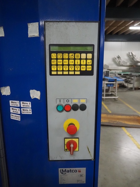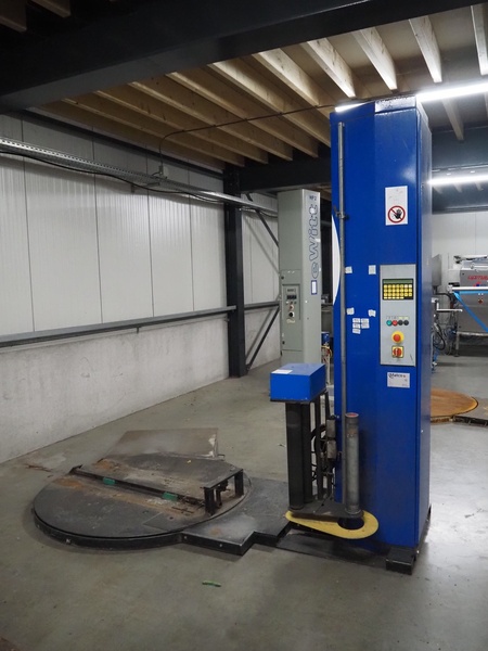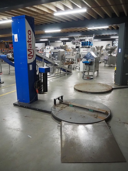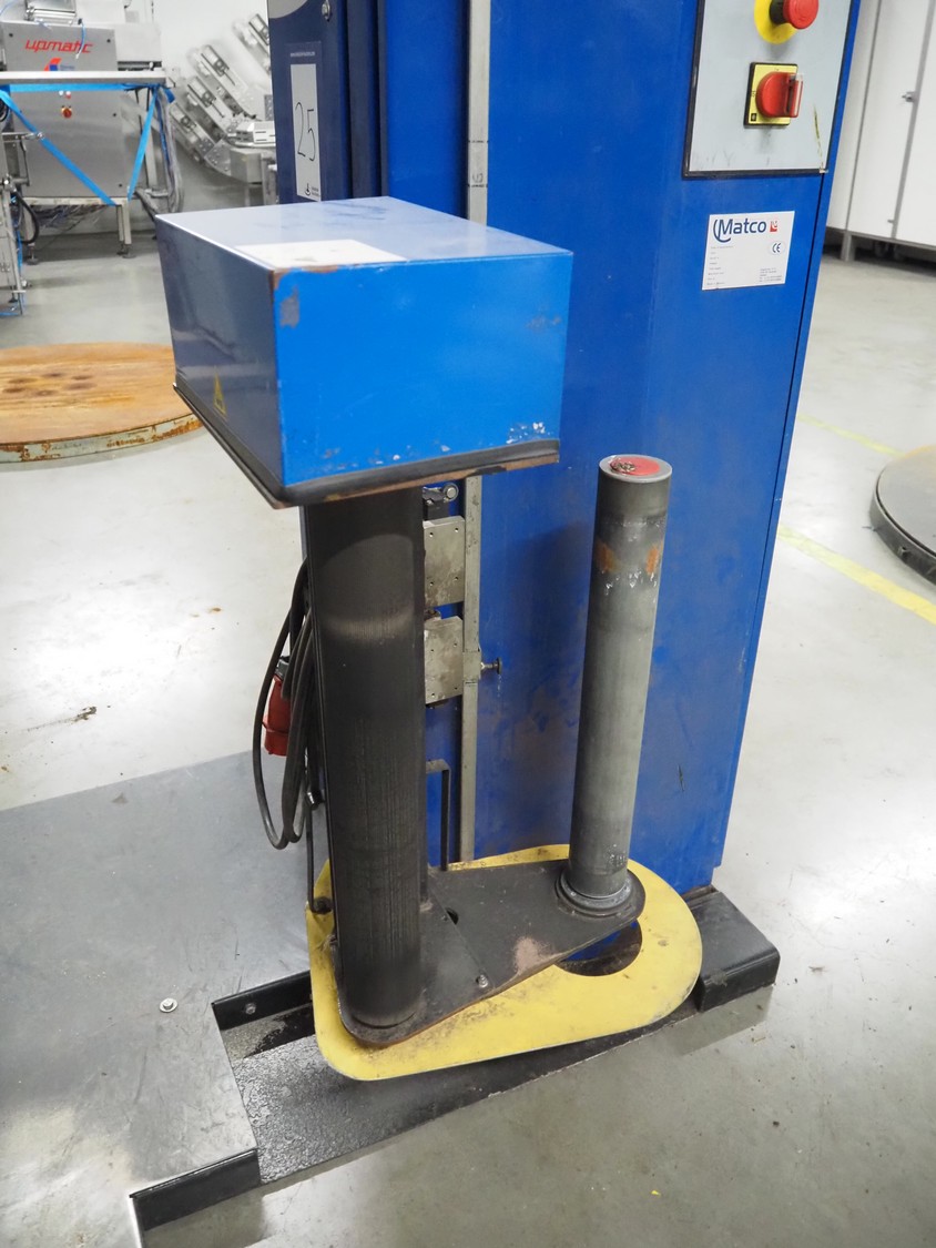 Matco pallet wrapper, type: A616L PRE-EL, serial number: MA04250, year of construction: 2005, 400 V, 3 Ph, 50 Hz, weight: 760 kg, maximum load: 1500 kg, diameter platform: 1600 mm, total dimensions: 2850 mm x 1600 mm x 2590 mm.