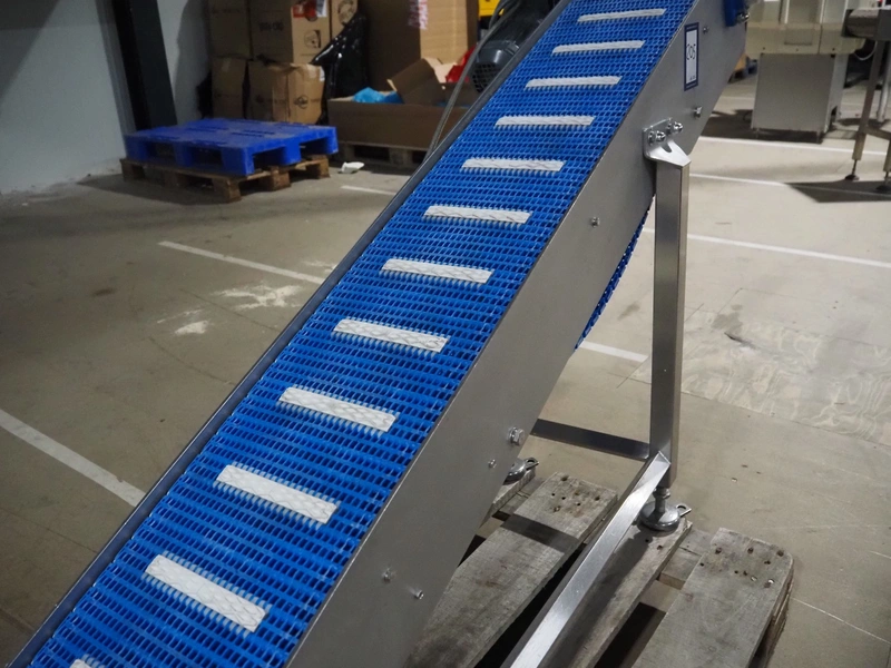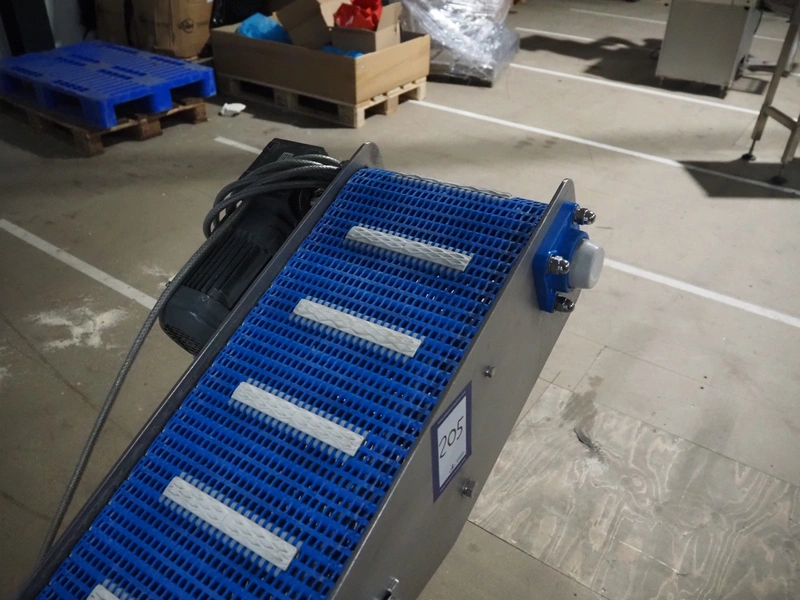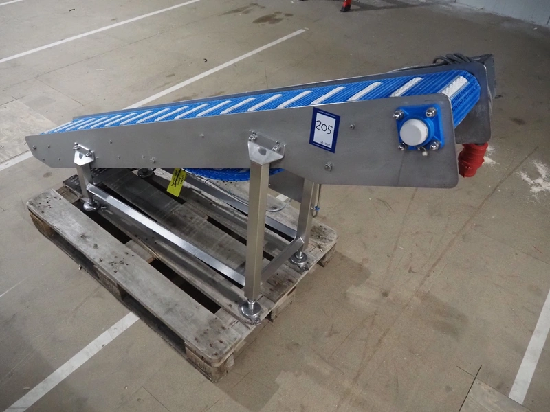 Elevating belt, s/s frame, plastic belt, belt width: 250 mm, elevating height: 950 mm, total dimensions: 1900 mm x 500 mm x 1000 mm.