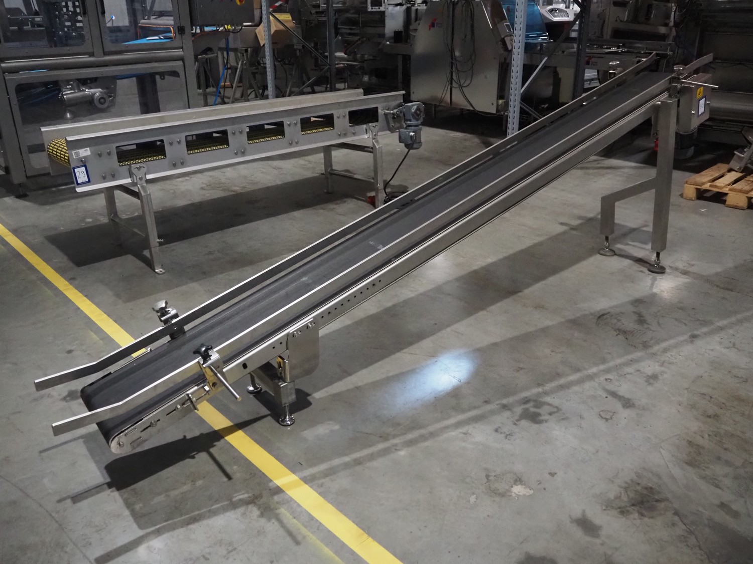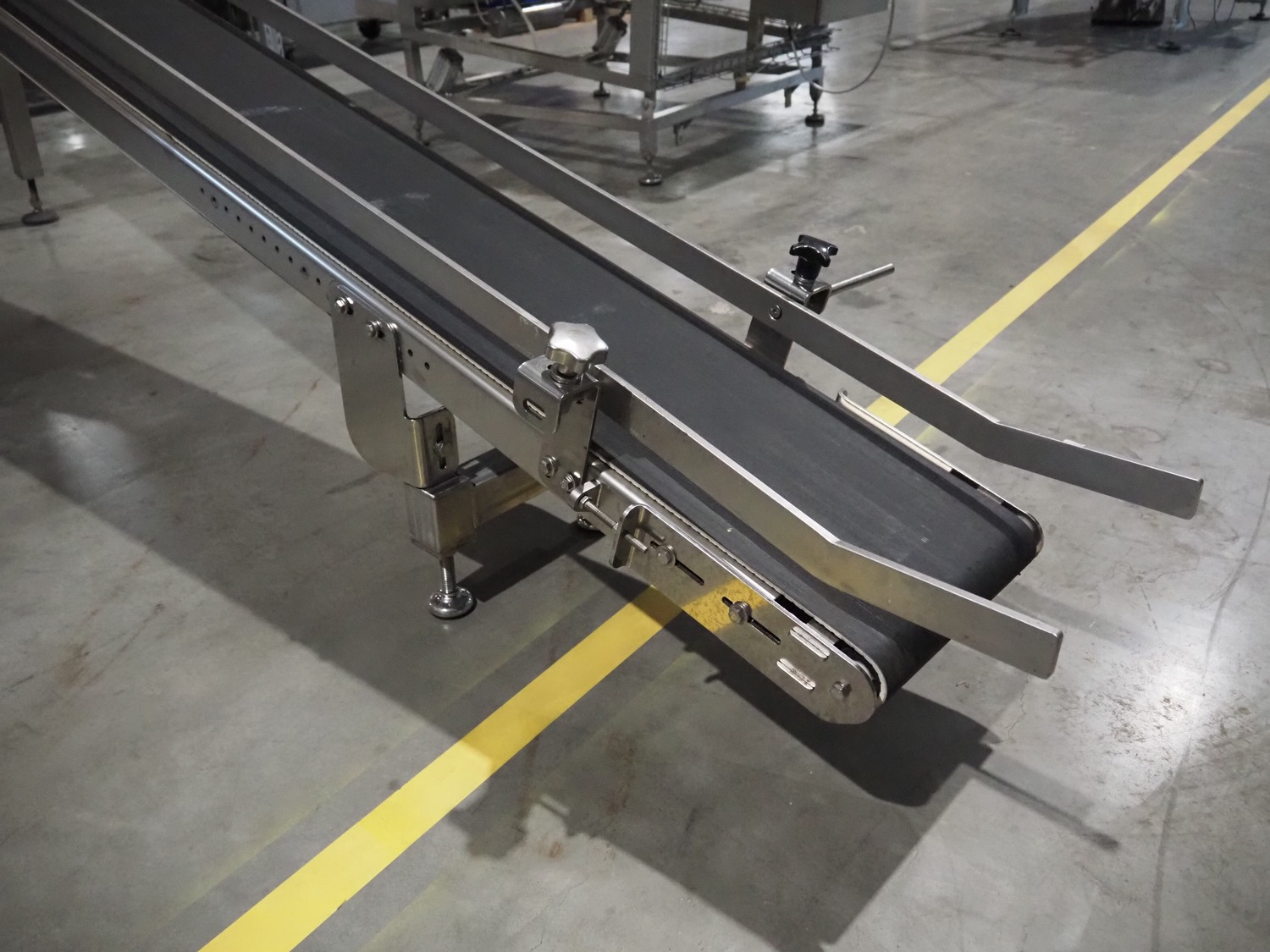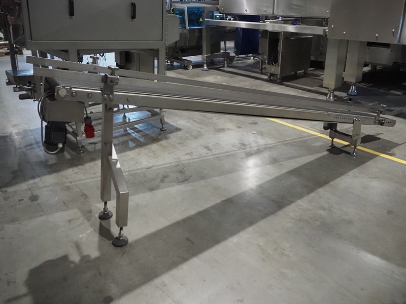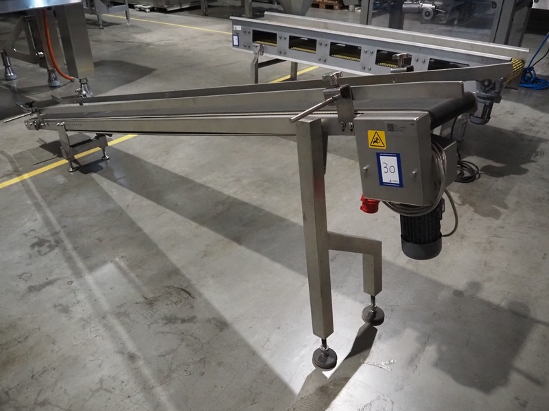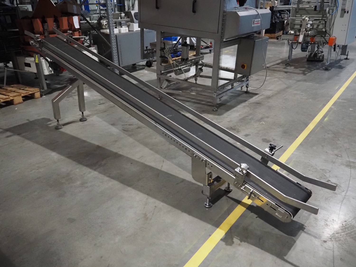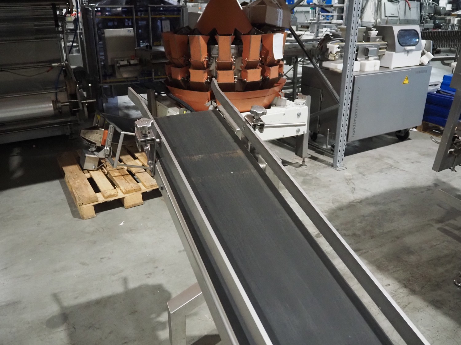 Elevating belt, s/s frame, plastic belt, belt width: 300 mm, elevating height: 1050 mm, total dimensions: 3500 mm x 570 mm x 1170 mm.